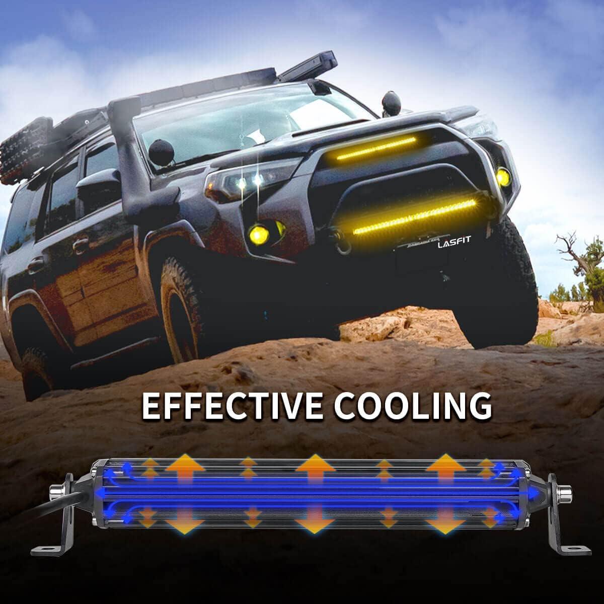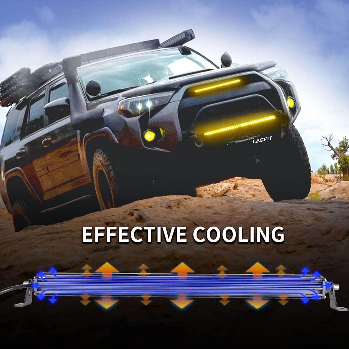 GREAT LIGHT EFFECT: The Light effect related to the usage of the power. The usage of the power of Lasfit light bar is 50%-70%. Lasfit light bar has about 100LM/W. It means that 1W can output 100 Lumen ( Others generally has 80LM/W). In the case of the same wattage, the higher the output lumen value, the brighter the light.