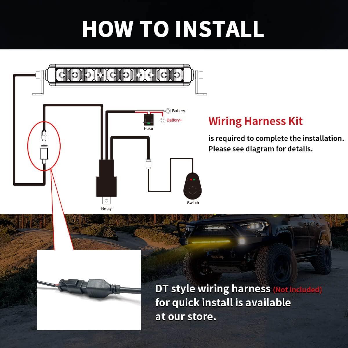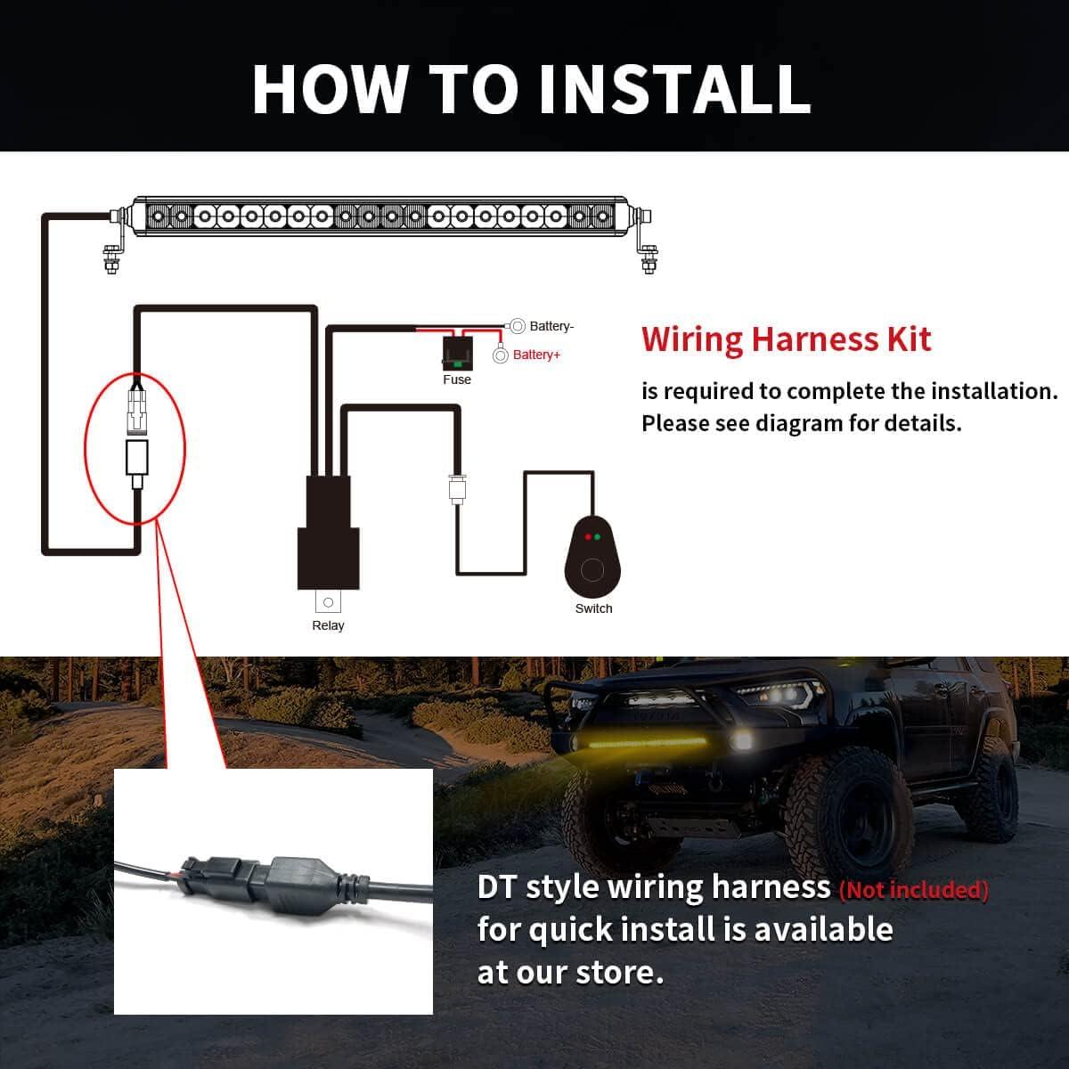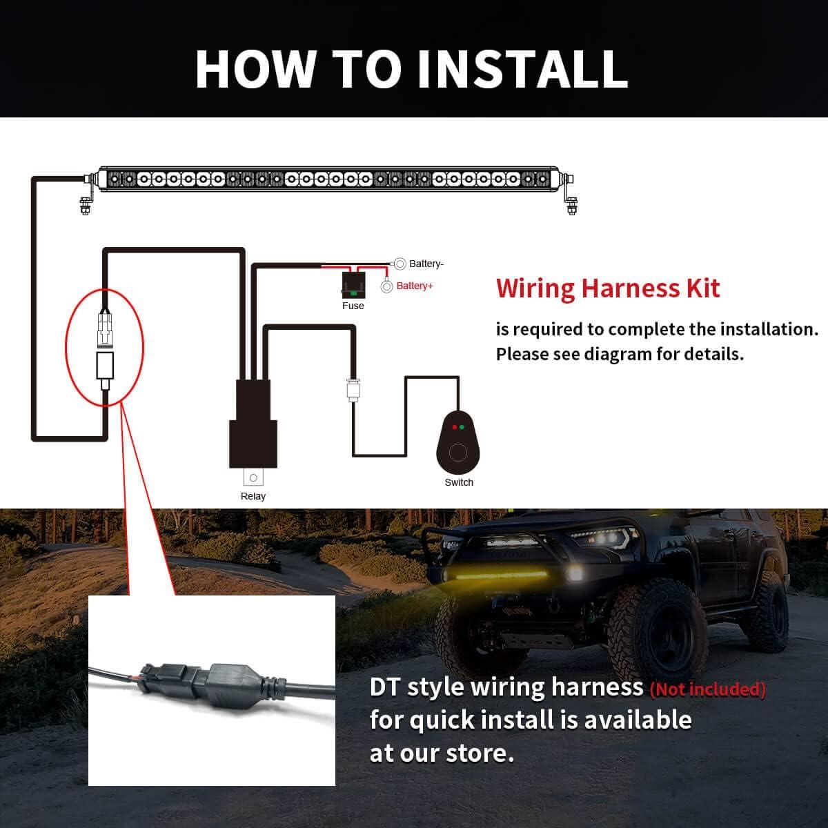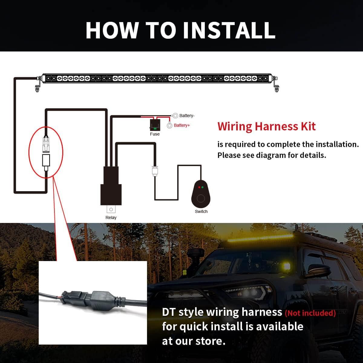 DT PLUG PORT&LASFIT SUPPORT: LASFIT light bars come with a standard DT plug port for easy installation with universal wiring harness switch kits (FEMALE PIGTAIL & WIRING HARNESS NOT INCLUDED). With 45 Days of Complete Purchase Protection and 3 YEARS of QUALITY ASSURANCE. LASFIT professional team provides you with good service in the CA. USA