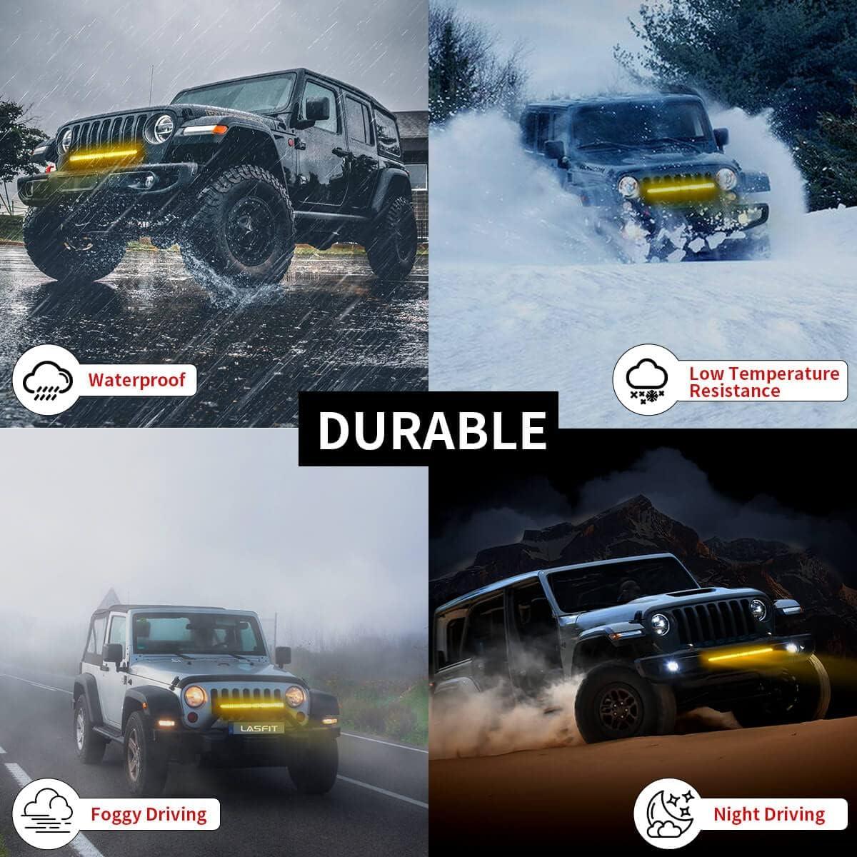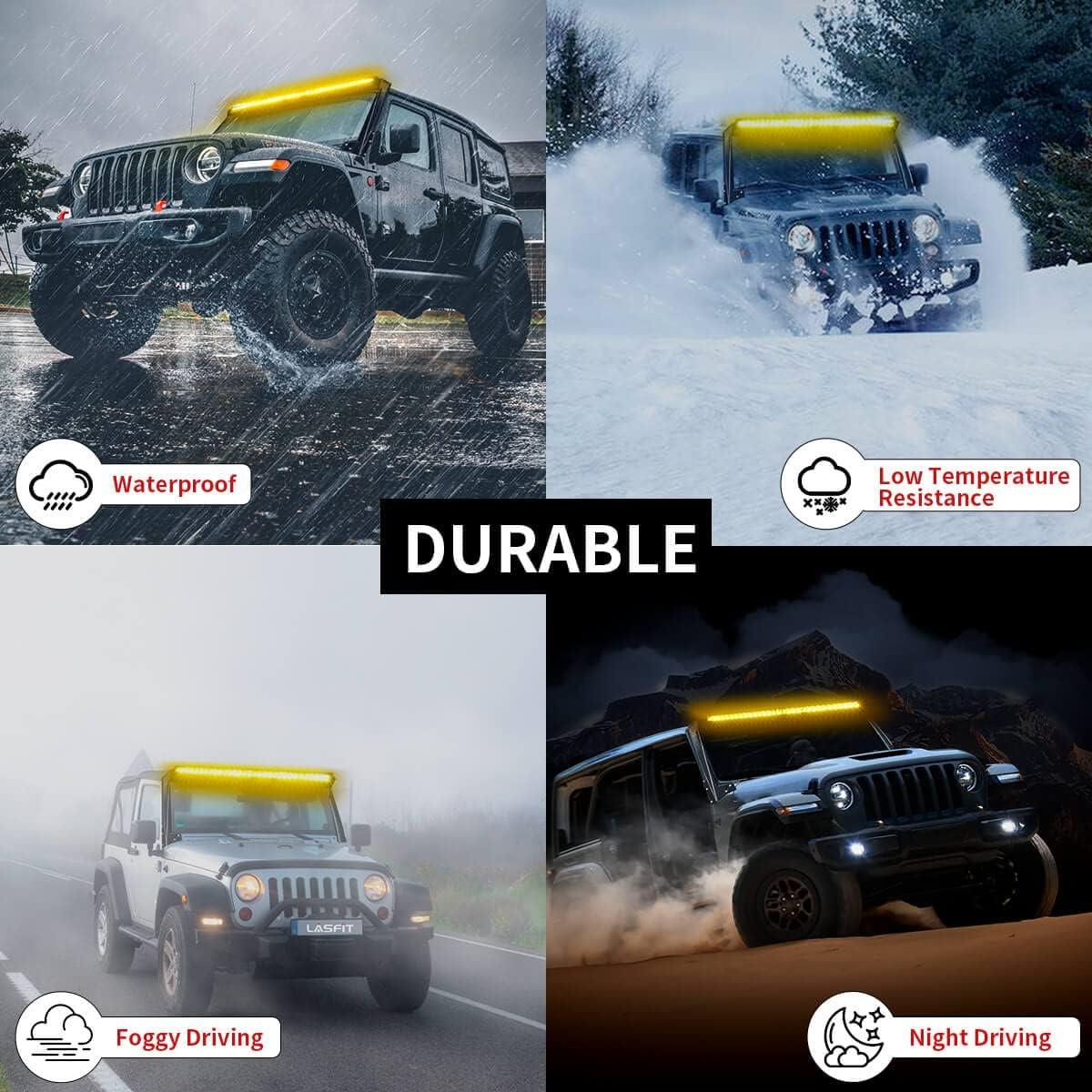 BUILT TO LAST: Our light bar is made with high-quality 6063 aluminum alloy housing, providing superior cooling for a lifespan of up to 50,000 hours. Plus, it's waterproof with an IP67 rating, so you can travel safely in any weather.