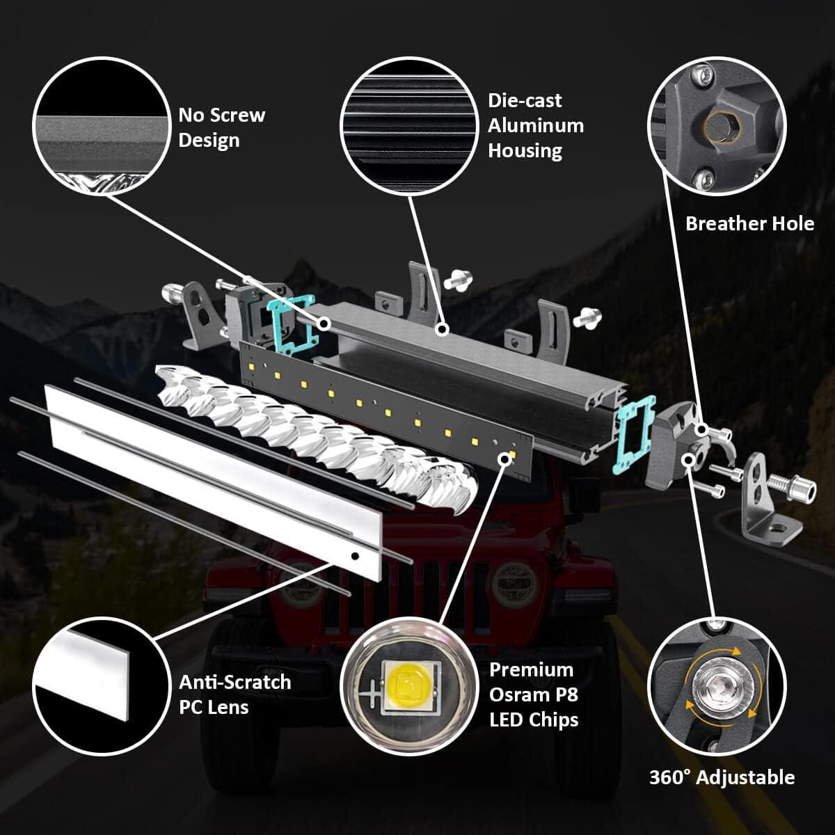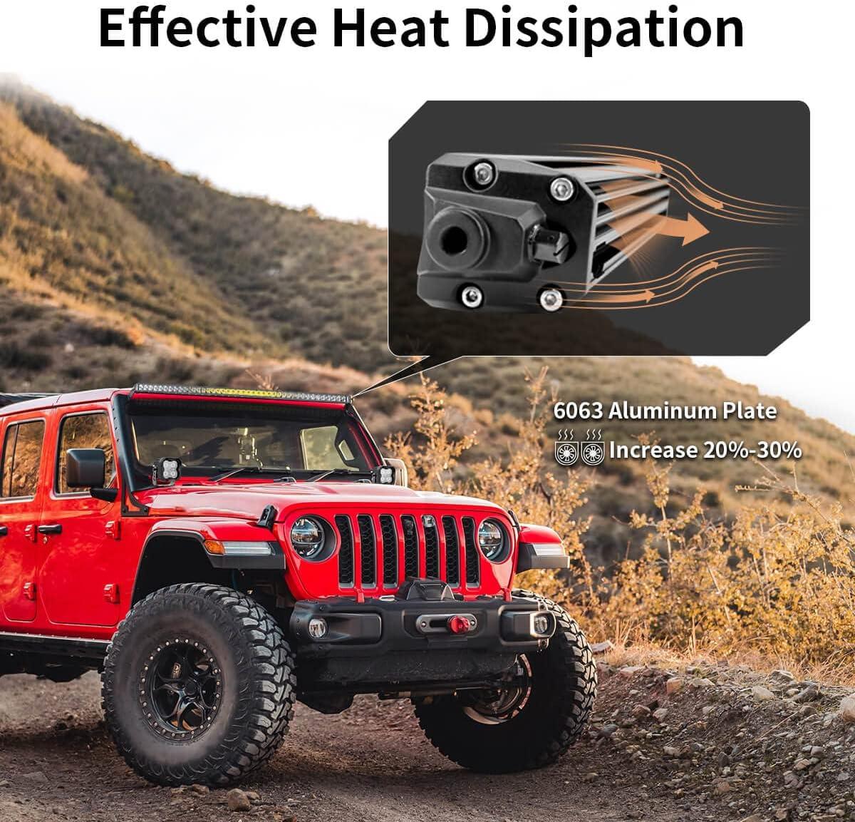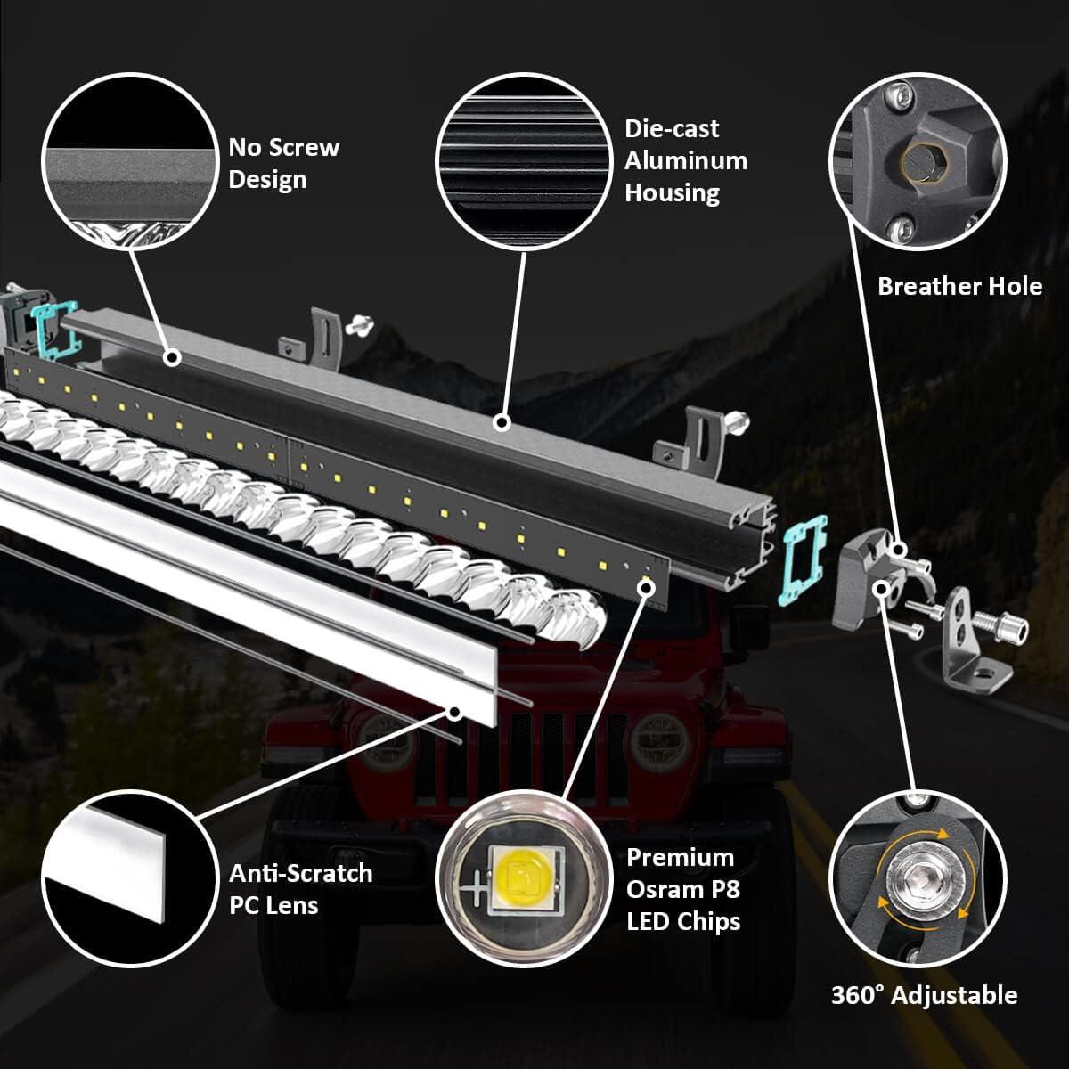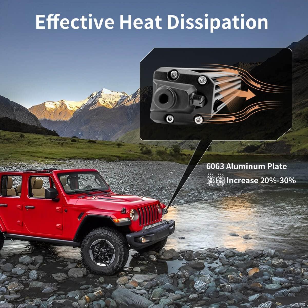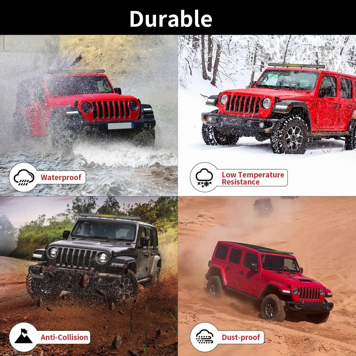 BUILT TO LAST: Our light bar is made with high-quality 6063 aluminum alloy housing, providing superior cooling for a lifespan of up to 50,000 hours. Plus, it's waterproof with an IP67 rating, so you can travel safely in any weather.