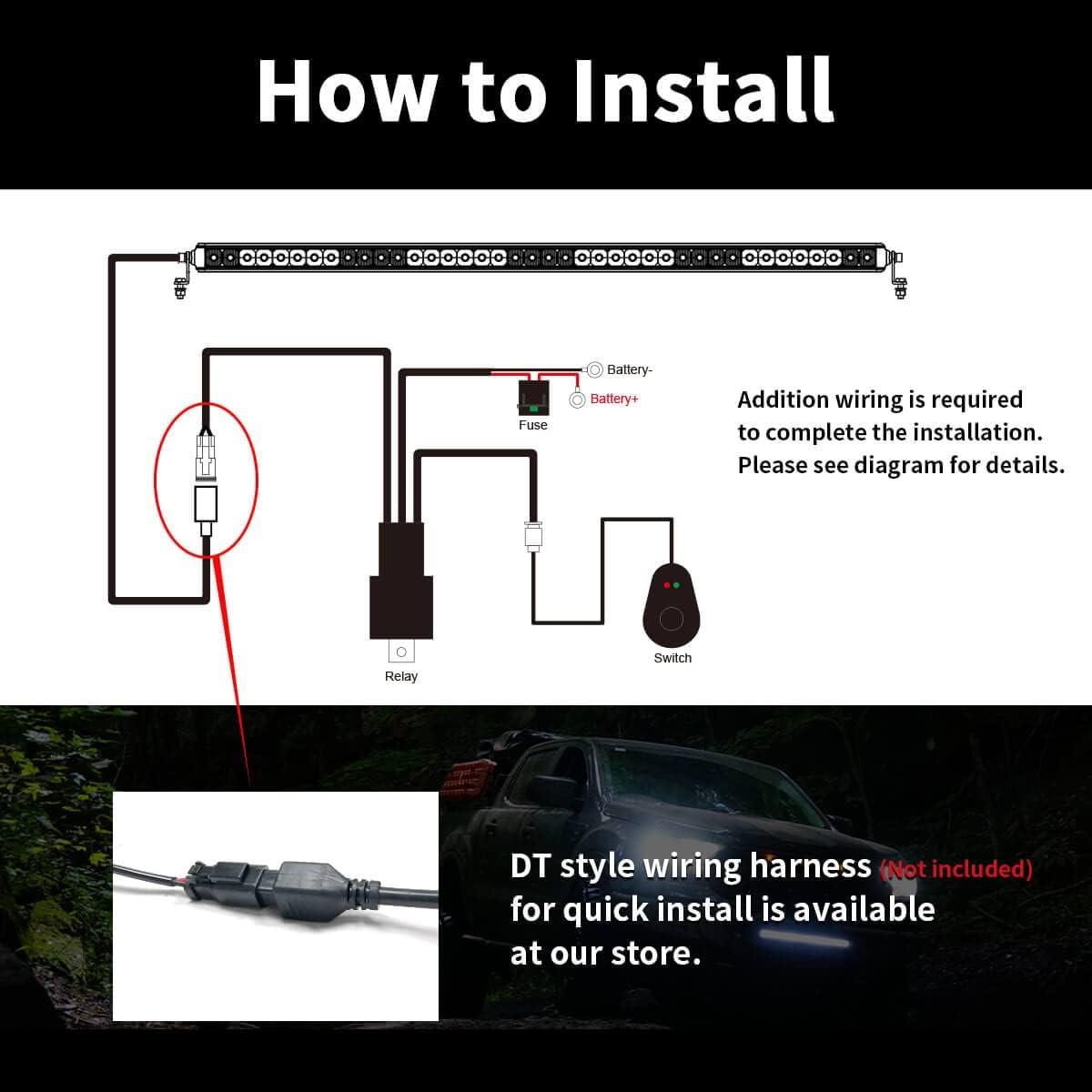 DT PLUG PORT&LASFIT SUPPORT: LASFIT light bars come with a standard DT plug port for easy installation with universal wiring harness switch kits (FEMALE PIGTAIL & WIRING HARNESS NOT INCLUDED). With 45 Days of Complete Purchase Protection and 3 YEARS of QUALITY ASSURANCE. LASFIT professional team provides you with good service in the CA. USA