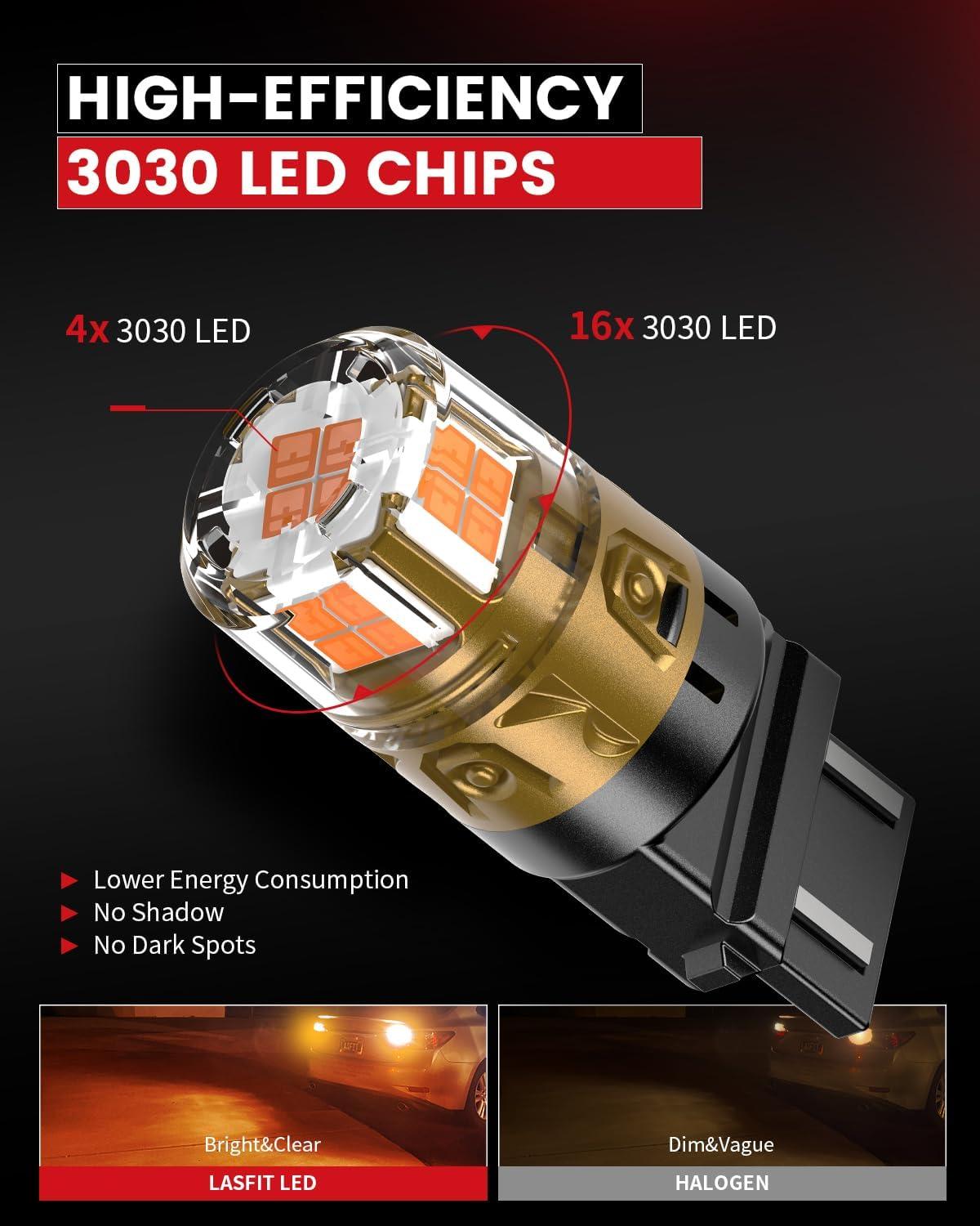 💡 Ultra-Bright 300% Brighter: Each set lasfit 921 912 led reverse light bulbs are 3000Lm, 16pcs high-quality LED chips deliver 360° full area 6000K xenon white light. 300% brighter than halogens giving you a crystal-clear visibility in cameras or mirror when reversing at night even rainy or foggy.