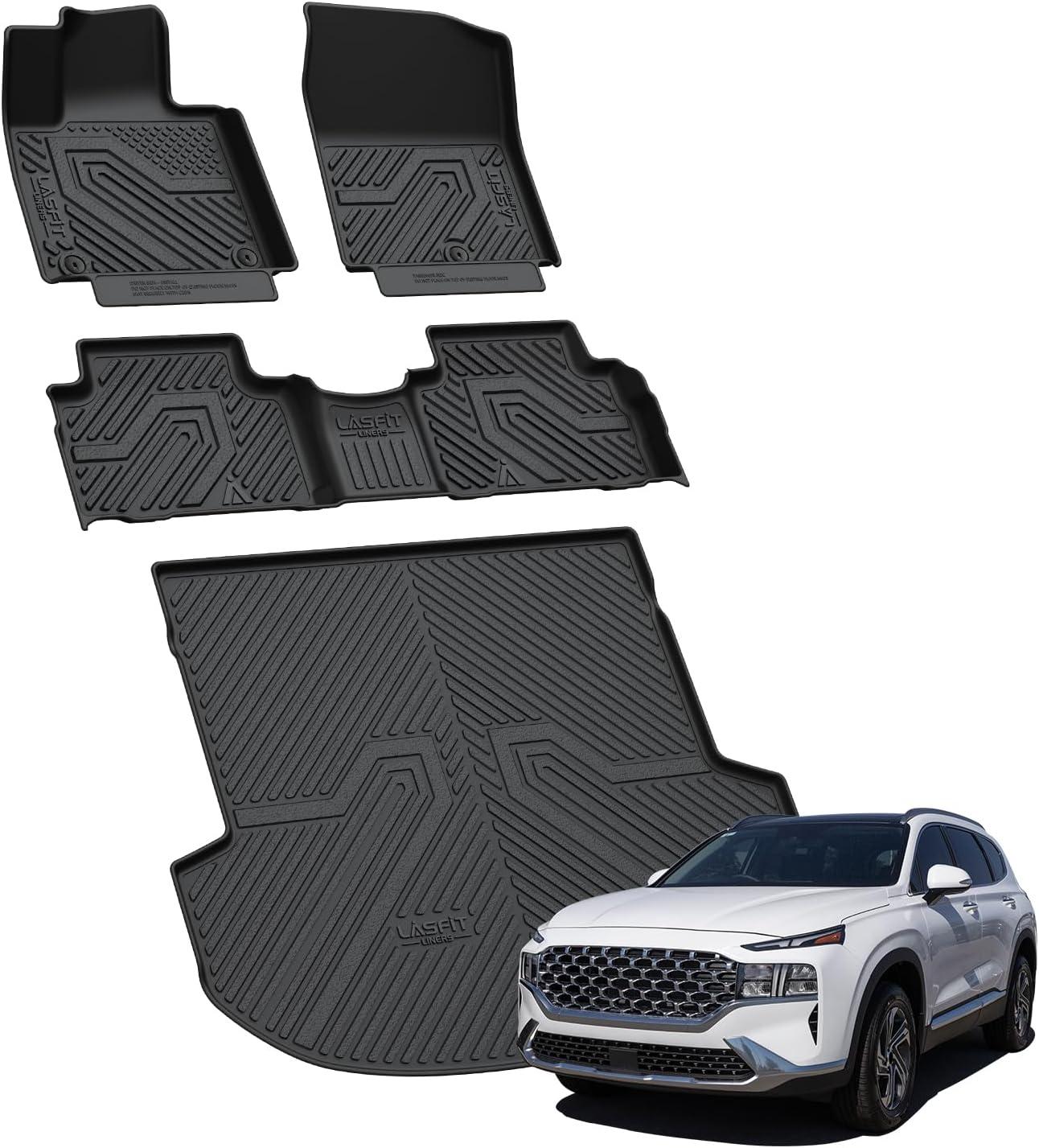 LASFIT Cargo Mat for Subaru Outback 2020-2025, All Weather TPE Custom Fit Easy Clean Durable No-Curling Trunk Mat for Outback 2025 2024 2023 2022 2021 2020 Trunk Liner, Black(2)For Hyundai Santa Fe | 2021-2023 | Gas)