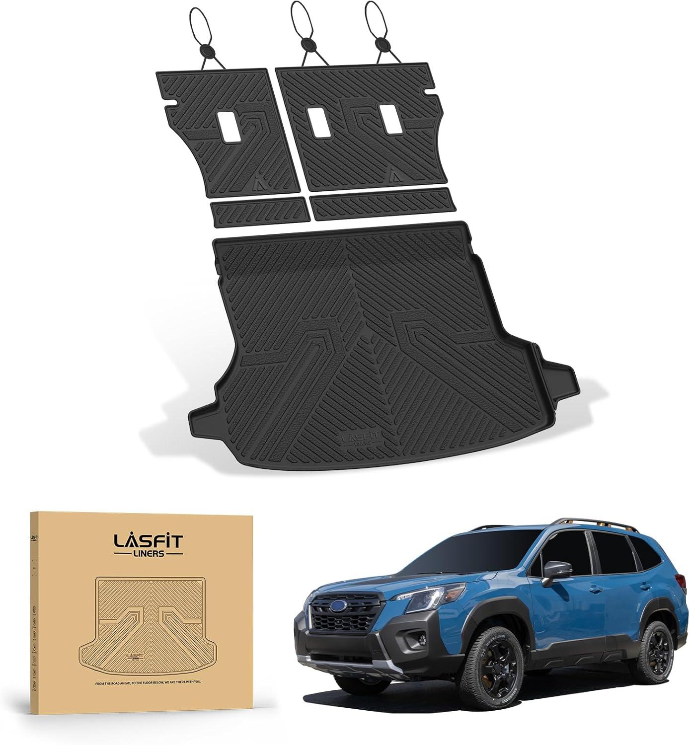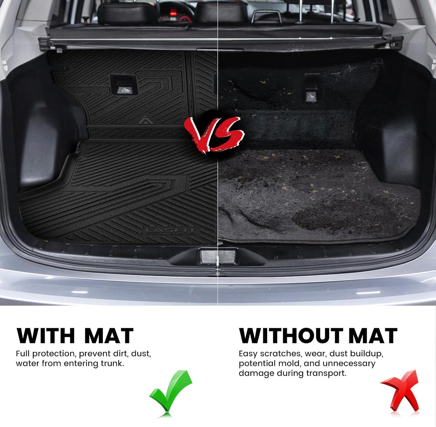 LASFIT Cargo Mat for Subaru Outback 2020-2025, All Weather TPE Custom Fit Easy Clean Durable No-Curling Trunk Mat for Outback 2025 2024 2023 2022 2021 2020 Trunk Liner, Black(4)For Subaru Forester | 2019-2024 | Cargo Mats)