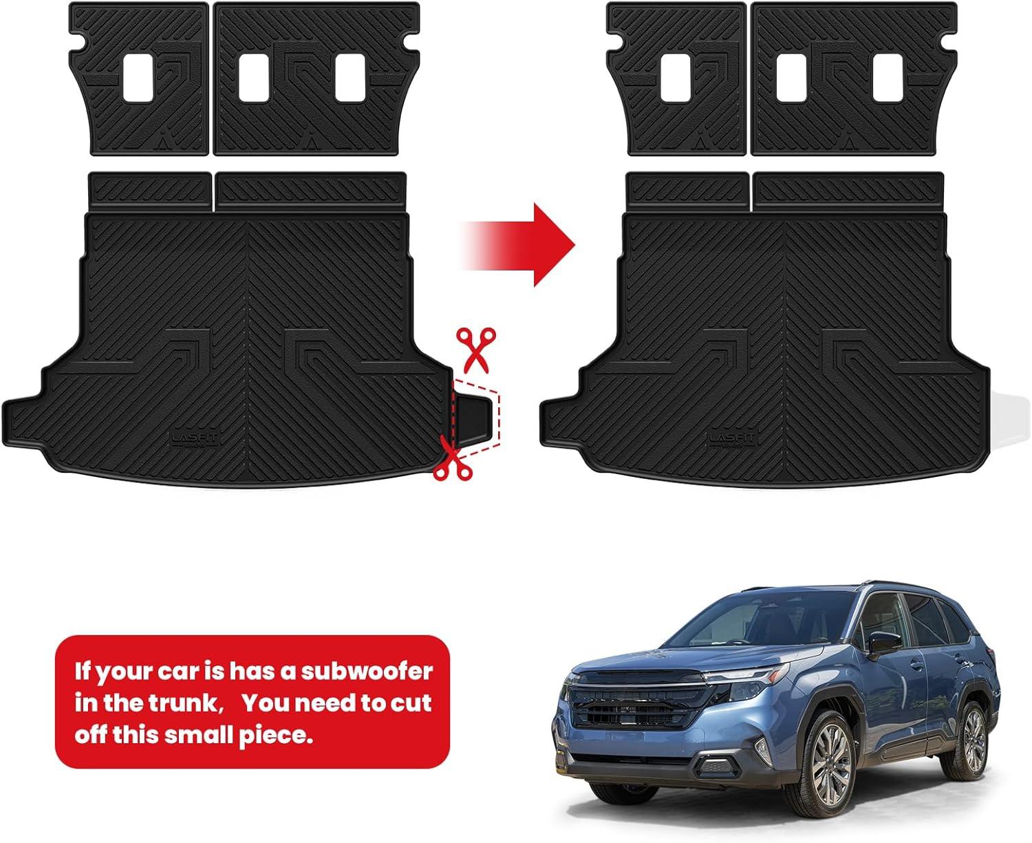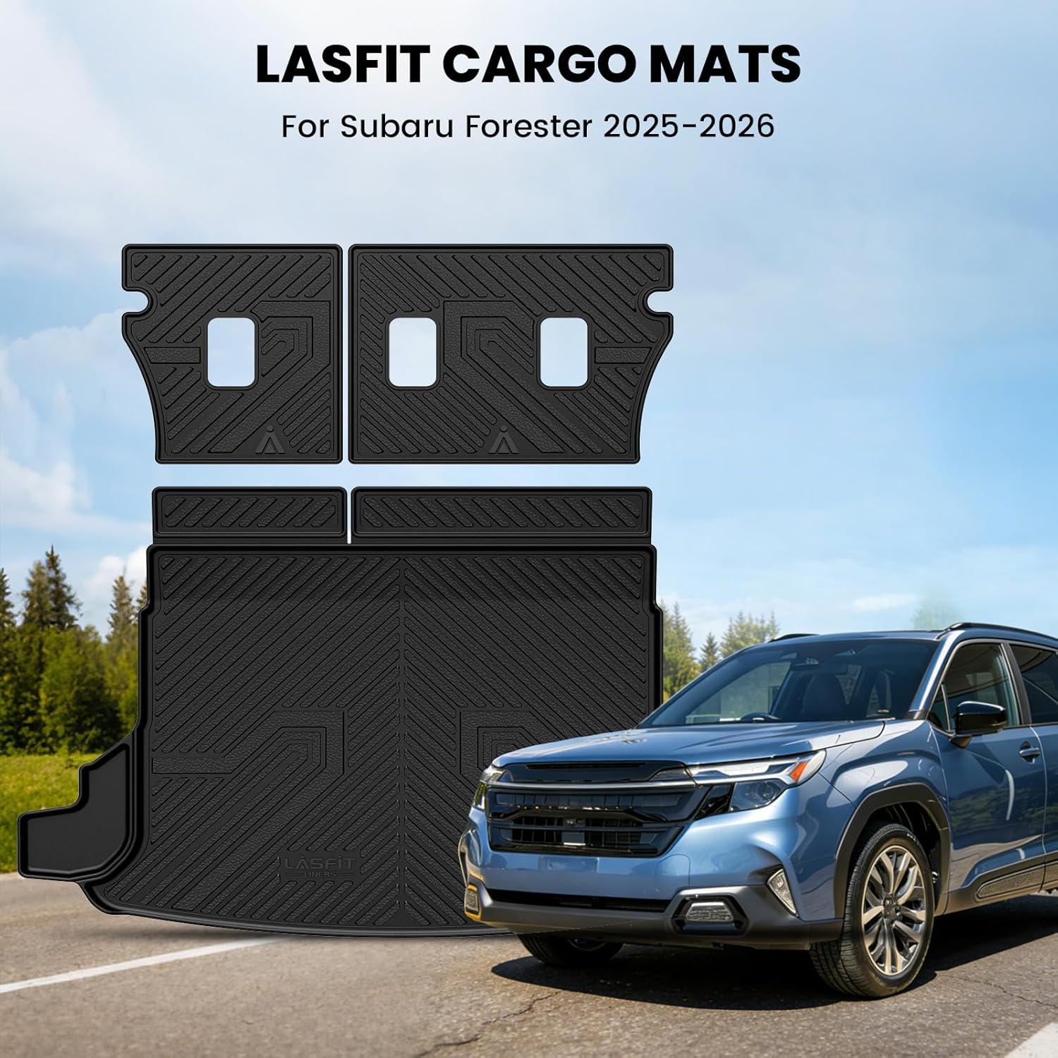 LASFIT Cargo Mat for Subaru Outback 2020-2025, All Weather TPE Custom Fit Easy Clean Durable No-Curling Trunk Mat for Outback 2025 2024 2023 2022 2021 2020 Trunk Liner, Black(4)For Subaru Forester |2025-2026|Gas|Floor Mats)