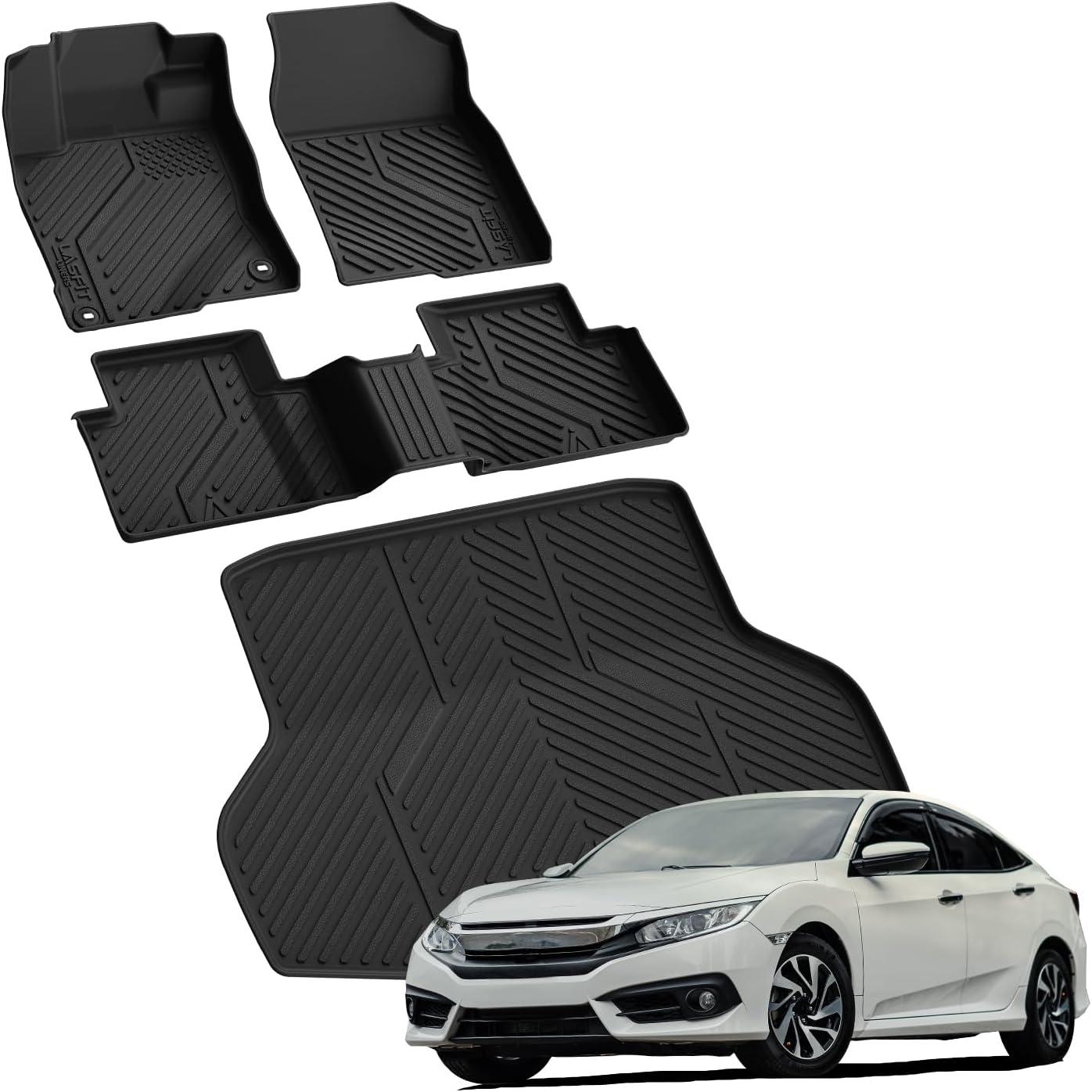 LASFIT Cargo Mat with Backrest Mat for Honda HRV 2023-2026 & for Acura ADX 2025-2026, All Weather TPE Custom Fit Trunk Mat Cargo Liner with Seatback Mat Accessories, Black(1)For Honda Civic | 2016-2021 | Full Set)