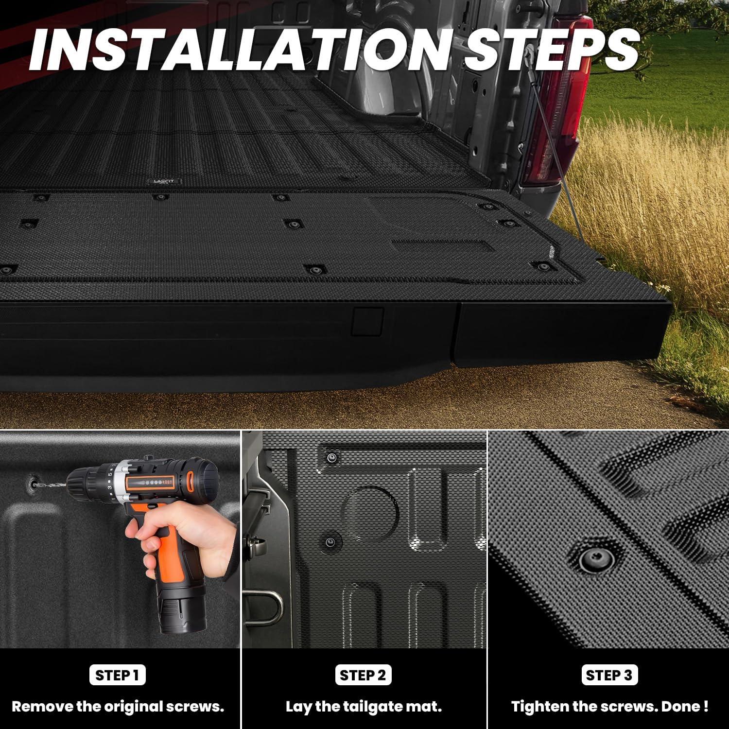 LASFIT Cargo Mats and Back Seat Cover Set for Ford Bronco 4-Door Models 2021-2025 All Weather Protector TPE Sub Trunk Liner Waterproof Backrest Mat Custom Fit Non-Slip Easy Clean Accessories(1) F-150| 21-26 | Tailgate Mat with Work Surface)