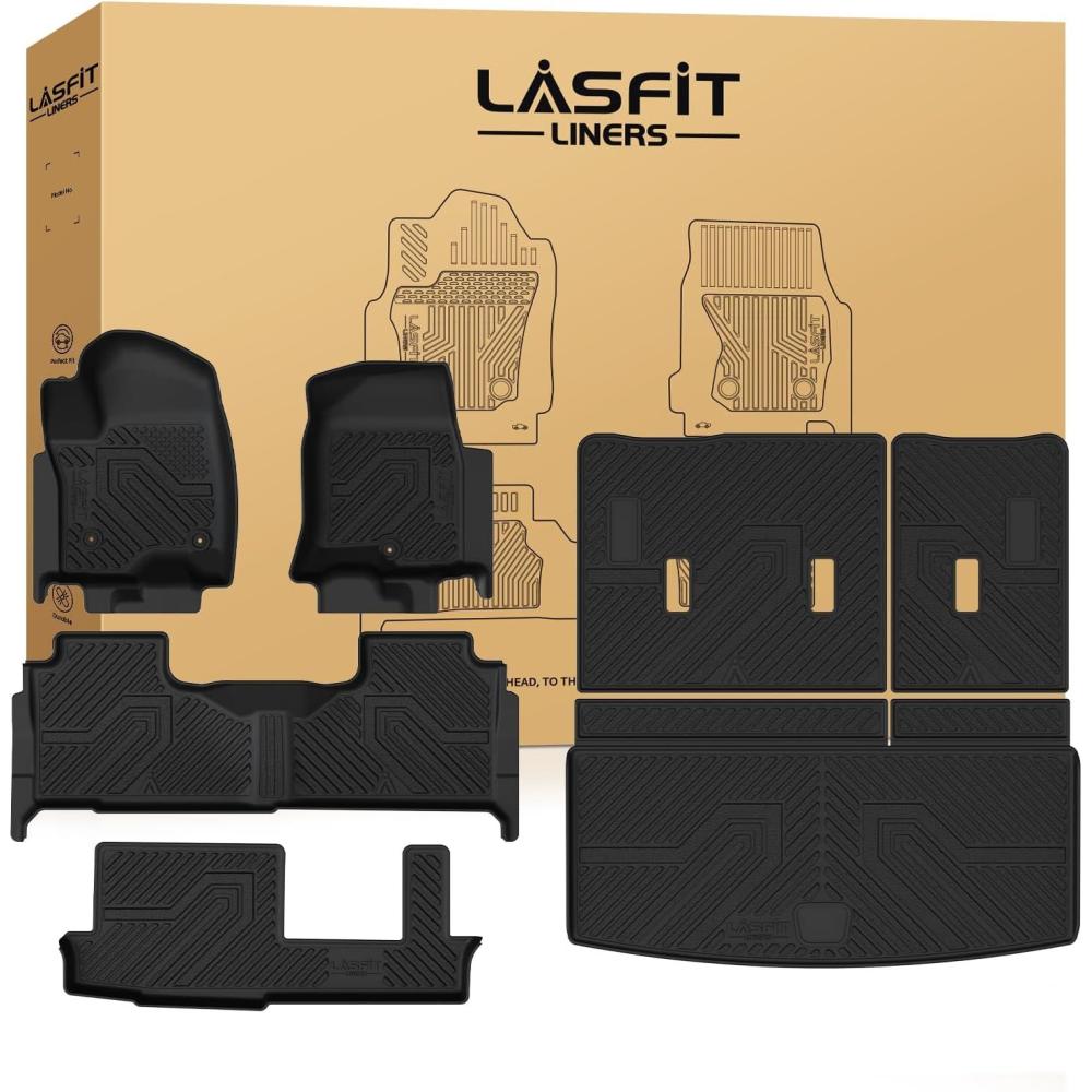 imageLASFIT Floor Mats 20192026 for Chevy SilveradoGMC Sierra 1500 20202026 2500HD 3500HD Only Double CabBench Seat Only Fit with Rear UnderSeat Storage But Not Fit 2nd Row Plastic StorageFit for YukonTahoeEscalade 8 Seats 20212026