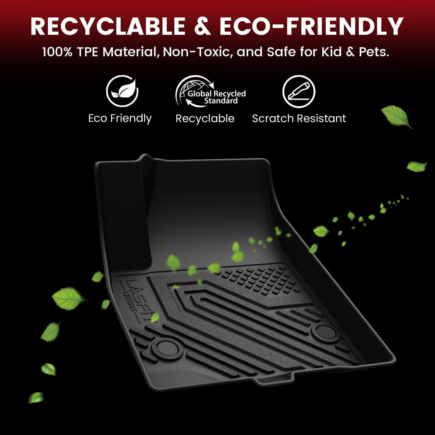 【Durable & Safe Material】LASFIT all weather floor mats for Acadia use elastic TPE (Thermoplastic Elastomer), no foul odor is produced even at high temperatures, soft touch and exquisite finish. The LASFIT floor mats for cars are skid-proof and recyclable.