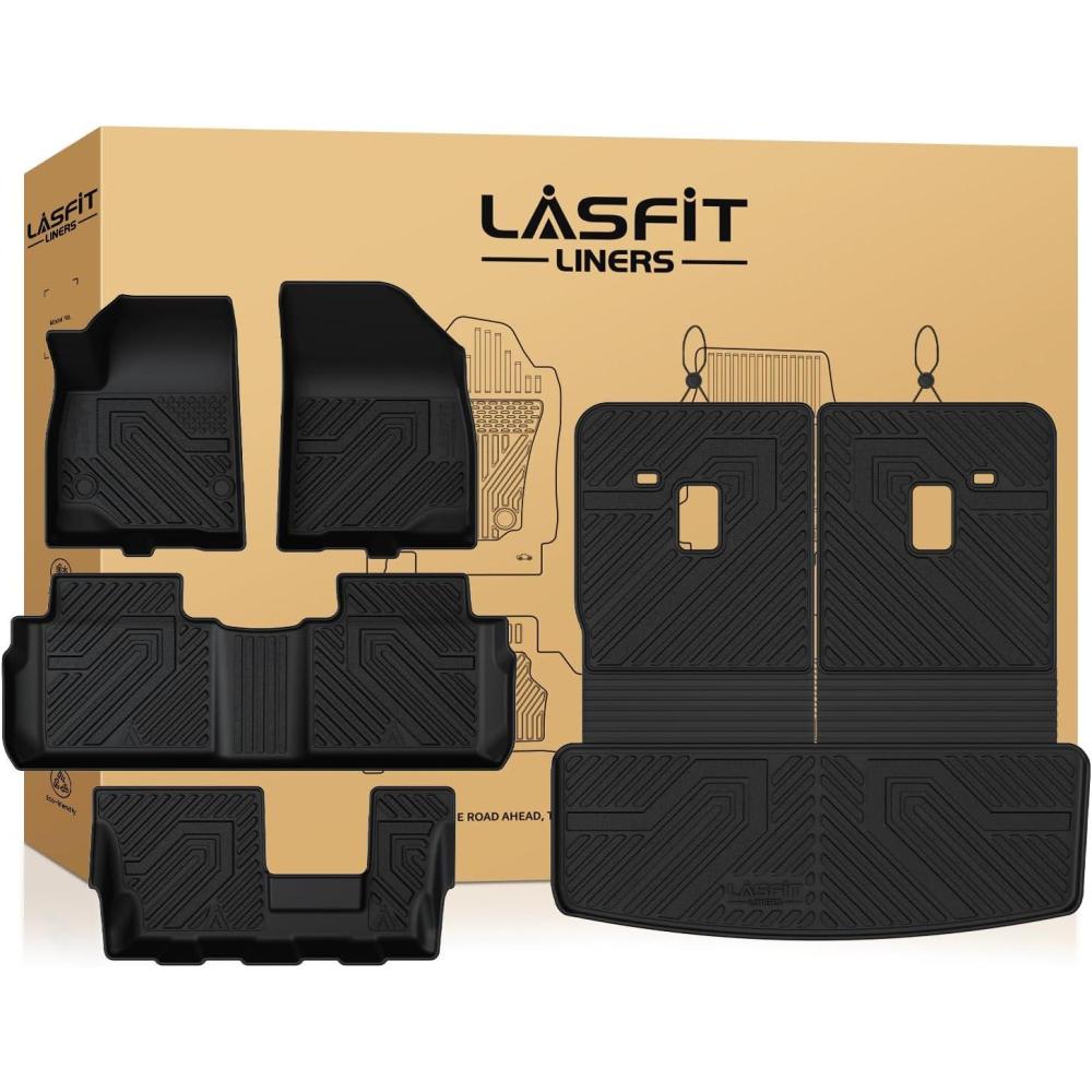 LASFIT Floor Mats & Cargo Liner with Backrest Mat for GMC Acadia 2017-2023 (Only Fit 7 Seats), All Weather TPE Custom Fit Floor Mats for Cars, 3 Rows Floor Liners Car Mats Full Set, Black(2017-2023 | For Mercedes Benz E Class | 1st & 2nd Row)