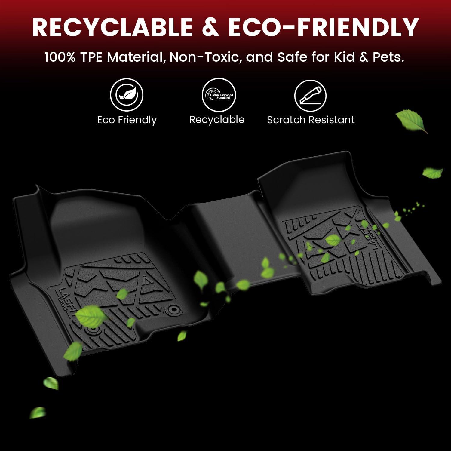 【Durable & Safe Material】LASFIT all weather floor mats for Acadia use elastic TPE (Thermoplastic Elastomer), no foul odor is produced even at high temperatures, soft touch and exquisite finish. The LASFIT floor mats for cars are skid-proof and recyclable.