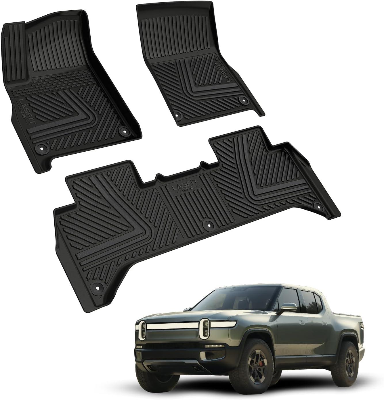 LASFIT Floor Mats & Cargo Liner with Backrest Mat for GMC Acadia 2017-2023 (Only Fit 7 Seats), All Weather TPE Custom Fit Floor Mats for Cars, 3 Rows Floor Liners Car Mats Full Set, Black(2022-2024 | For Rivian R1T | 1st & 2nd Row)