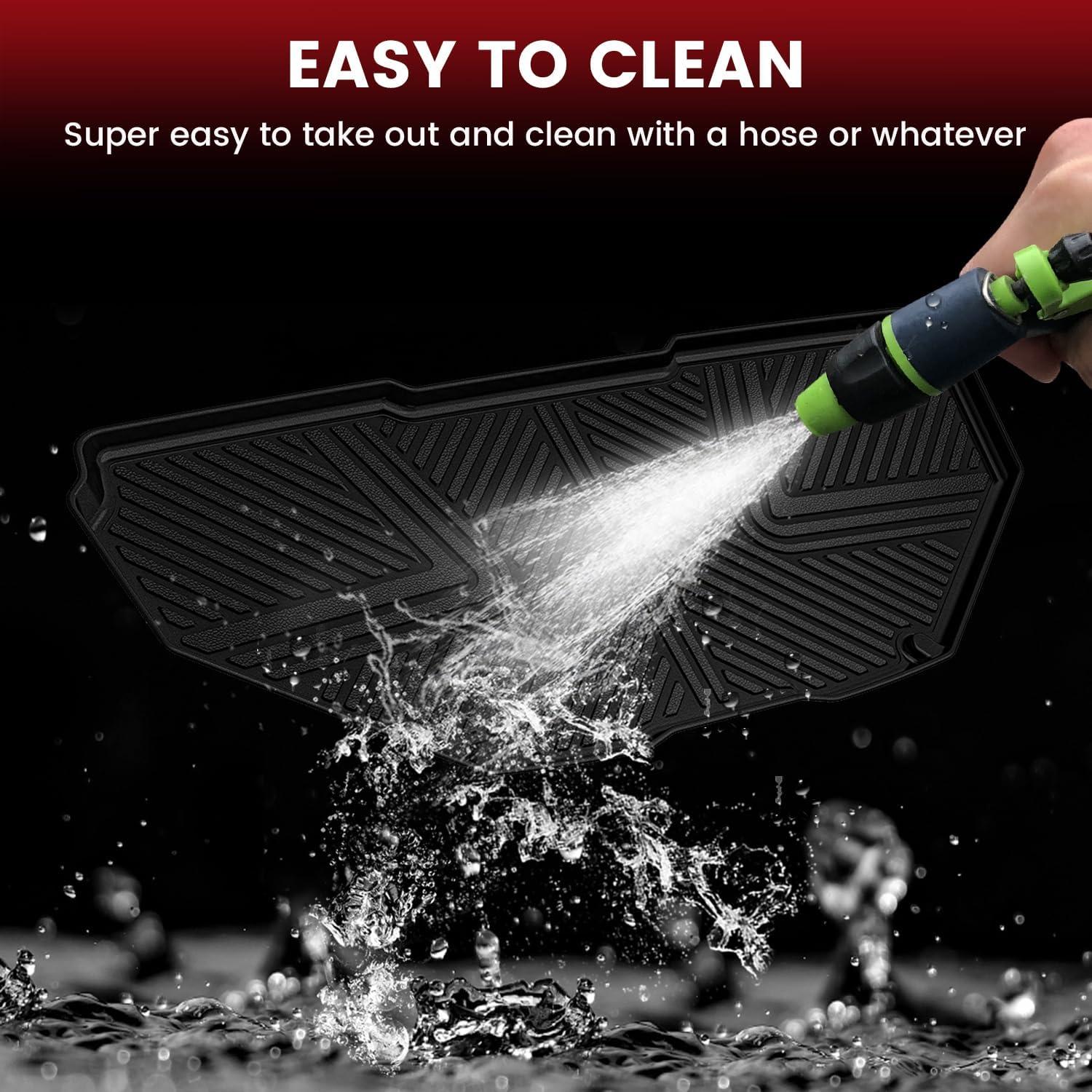 【All Weather Protection】The car mats full set shield your floor from dirt, mud, salt, rain, snow, and even hot summer temperatures. Cleaning up daily wear and tear off our car mats with backrest mat is a breeze.