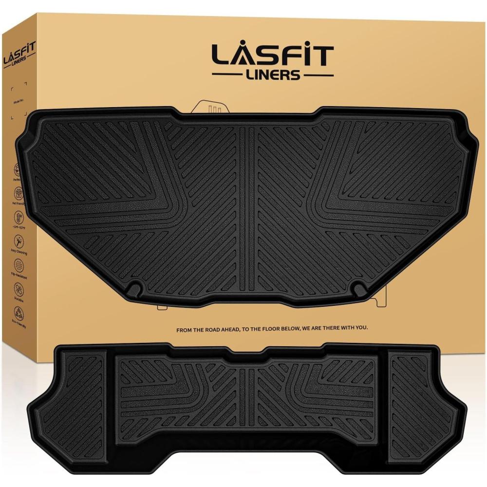 LASFIT Floor Mats & Cargo Liner with Backrest Mat for GMC Acadia 2017-2023 (Only Fit 7 Seats), All Weather TPE Custom Fit Floor Mats for Cars, 3 Rows Floor Liners Car Mats Full Set, Black(2022-2024 | For Rivian R1T | 1st & 2nd Row)