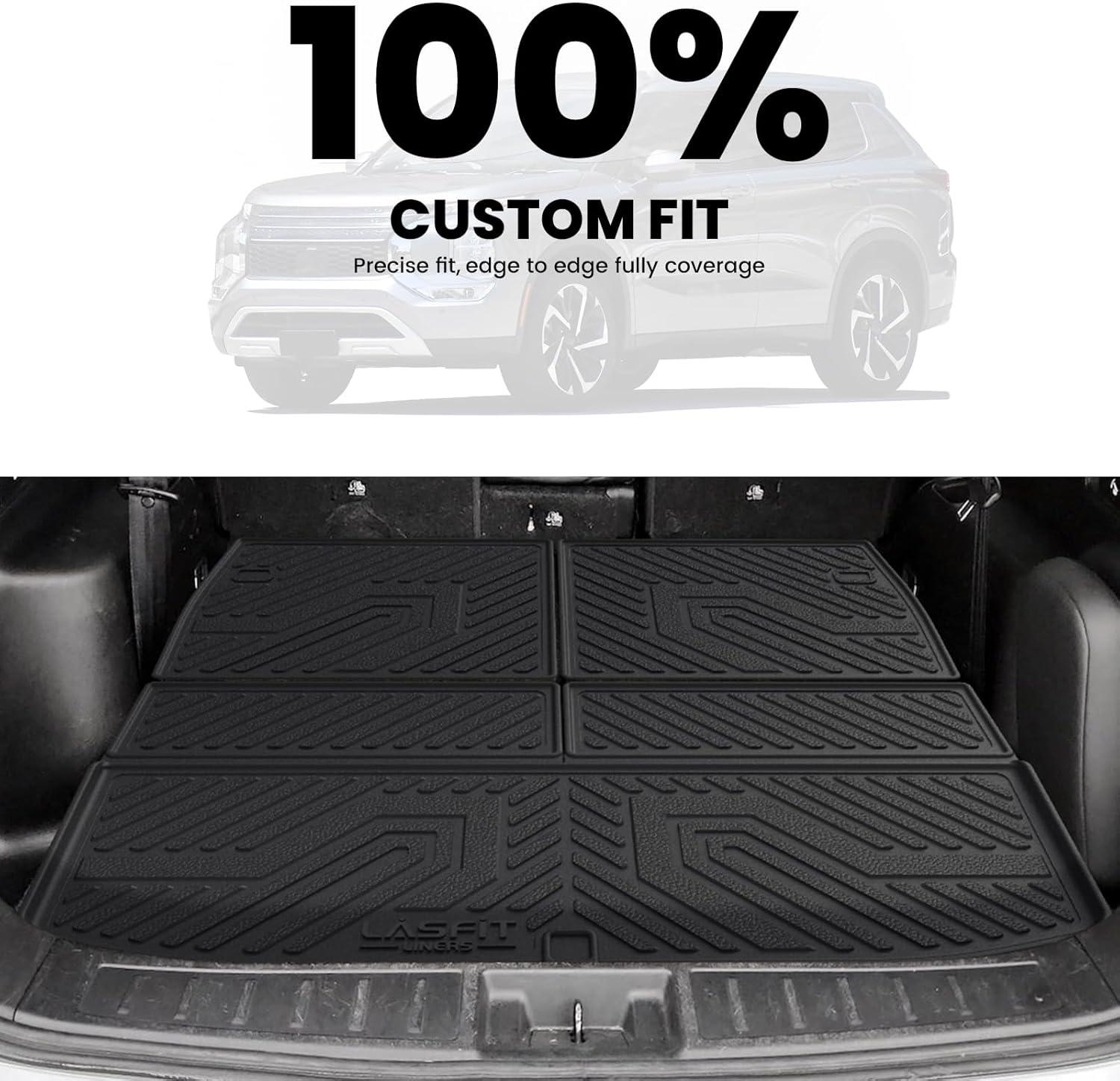 LASFIT Floor Mats & Cargo Liner with Backrest Mat for GMC Acadia 2017-2023 (Only Fit 7 Seats), All Weather TPE Custom Fit Floor Mats for Cars, 3 Rows Floor Liners Car Mats Full Set, Black(2022-2025 | For Mitsubishi Outlander | Cargo Mats & Backrest)