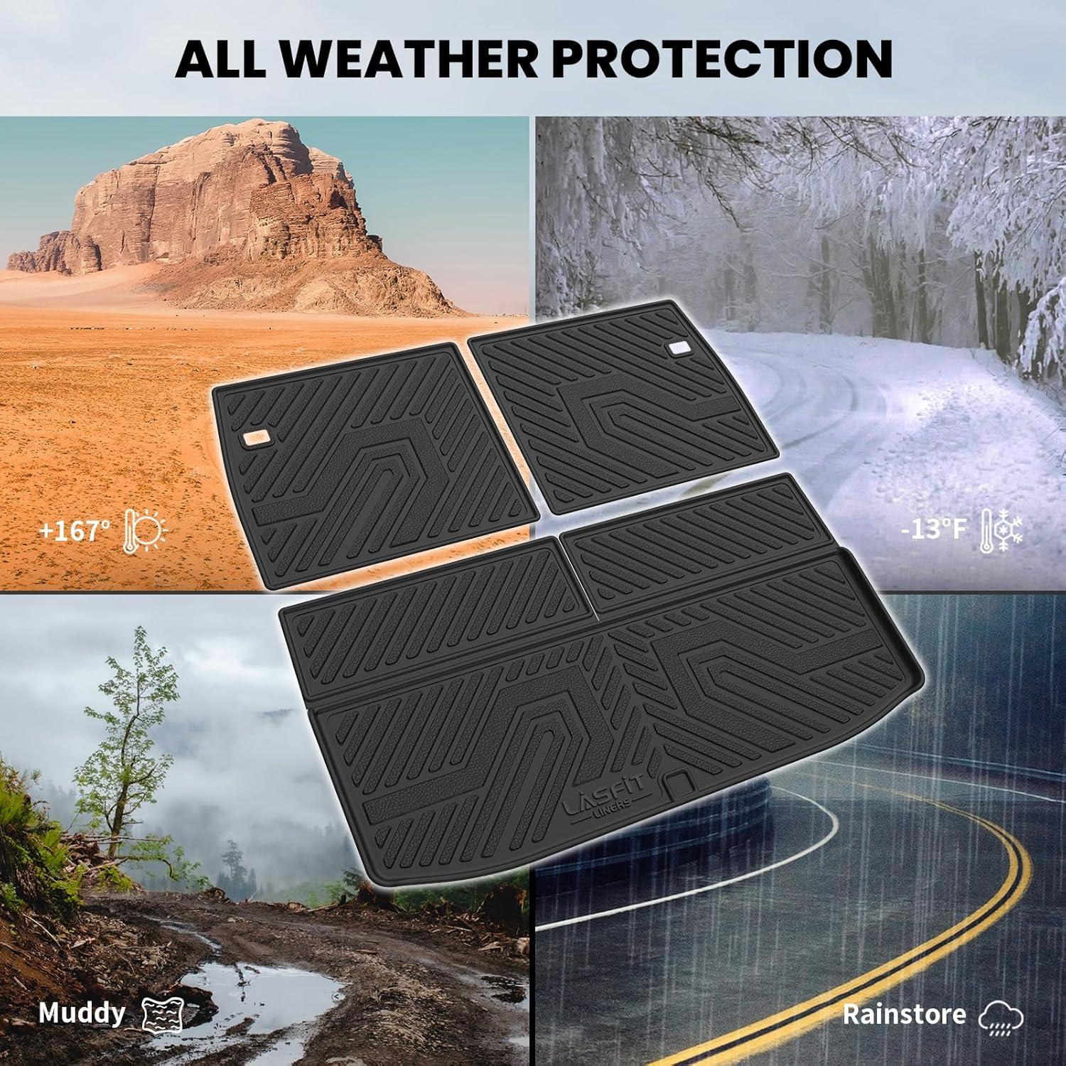 LASFIT Floor Mats & Cargo Liner with Backrest Mat for GMC Acadia 2017-2023 (Only Fit 7 Seats), All Weather TPE Custom Fit Floor Mats for Cars, 3 Rows Floor Liners Car Mats Full Set, Black(2022-2025 | Rivian R1S | Backrest&Cargo Mats)