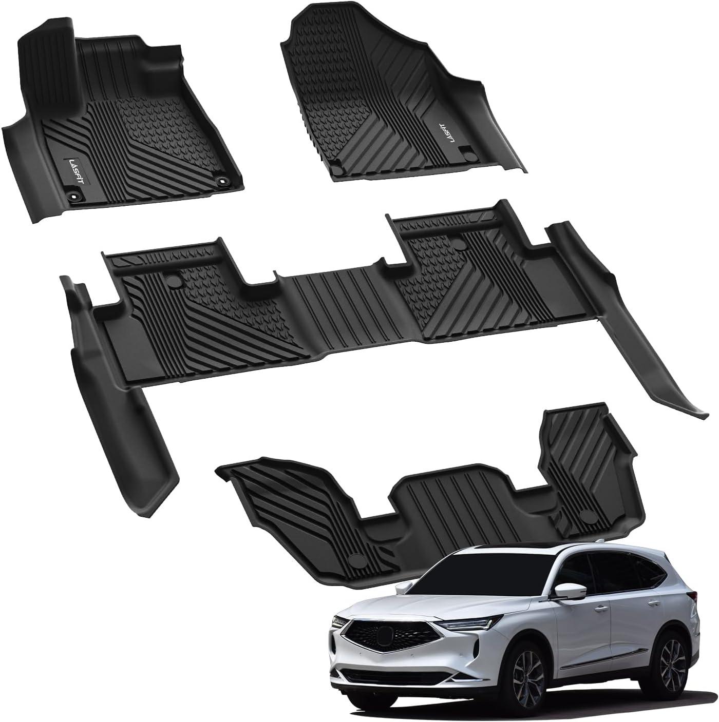LASFIT Floor Mats & Cargo Liner with Backrest Mat for GMC Acadia 2017-2023 (Only Fit 7 Seats), All Weather TPE Custom Fit Floor Mats for Cars, 3 Rows Floor Liners Car Mats Full Set, Black(2022-2026 | For Acura MDX | 1st & 2nd & 3rd Row)