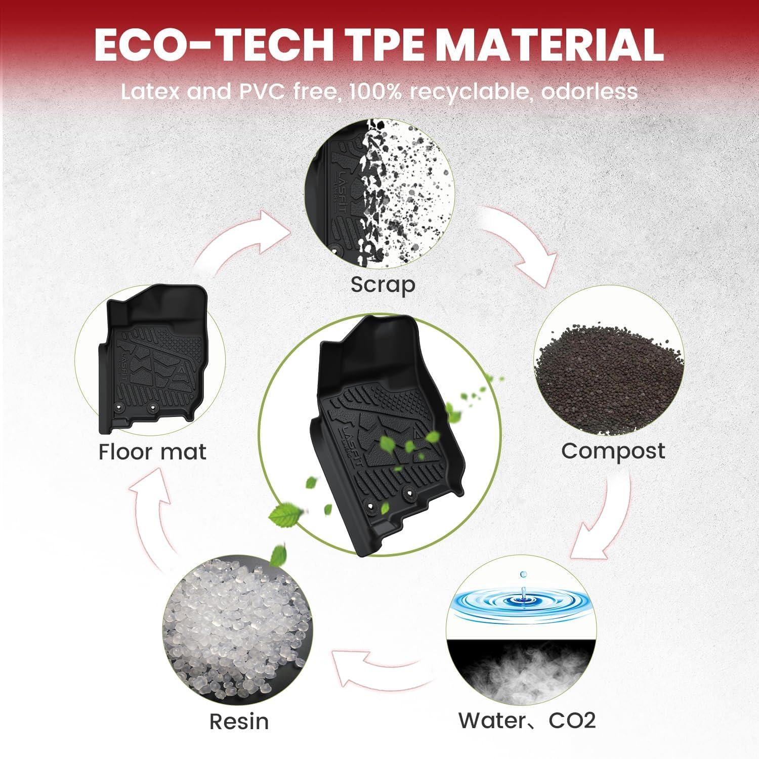 Premium TPE Material : LASFIT floor mats accessoires made of 100% brand new TPE material (Thermoplastic Elastomer) for a comfortable and soft touch and exquisite finish. More friendly to the elderly, children and pets. Exclusively designed anti-slip studs for more safety and shock and sound absorbent.