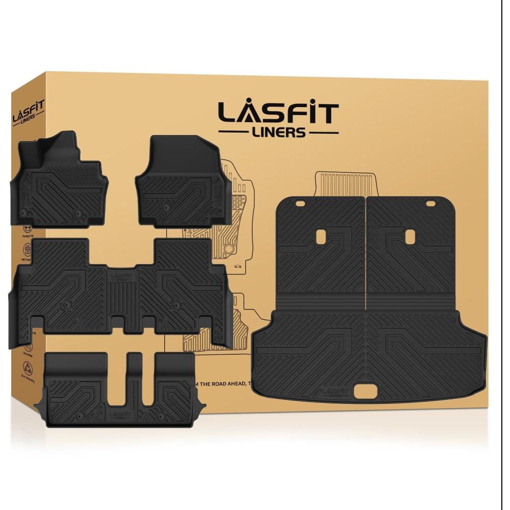LASFIT Floor Mats & Cargo Mats for KIA EV9 2026 2025 2024 (Only Fit for 7-Seats), All Weather TPE Custom Fit Kia EV9 2024-2026 Full Set Car Accessories Floor Liners(3)For Kia EV9 | 2024-2026 | 7-Seats | Full Set)