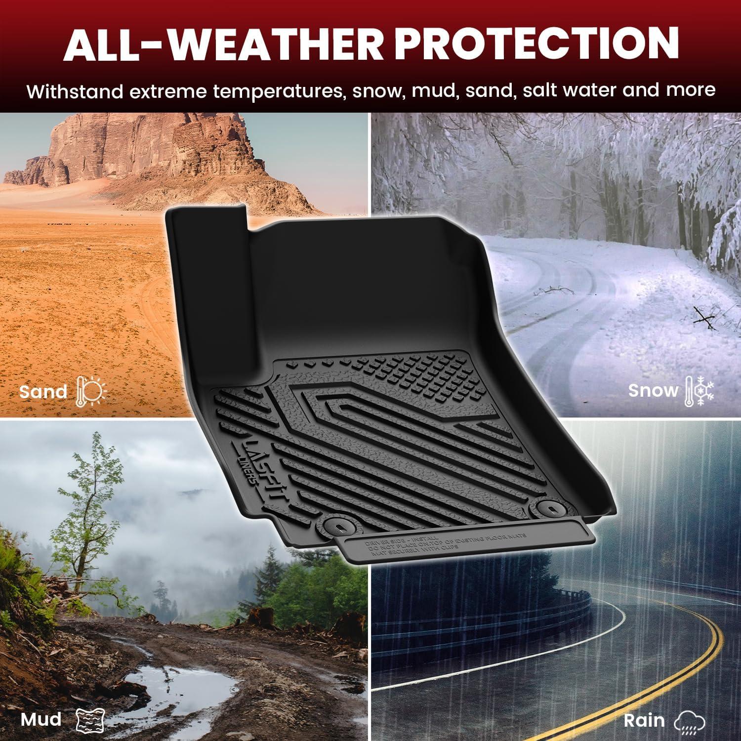 Firm Yet Flexible & Easy To Clean : Raised edges all the way around have been upgraded to the innovative material, allowing the all weather floor mats last long, better protection against spills, way more durable that they won't curl or end up buckling. Also can be easily cleaned in a few minutes