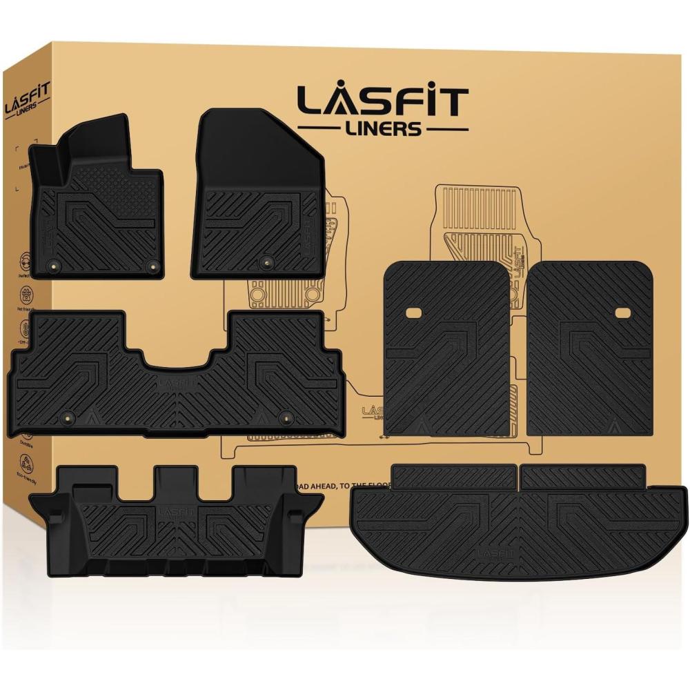 LASFIT Floor Mats & Cargo Mats for KIA EV9 2026 2025 2024 (Only Fit for 7-Seats), All Weather TPE Custom Fit Kia EV9 2024-2026 Full Set Car Accessories Floor Liners(3)For Kia EV9 | 2024-2026 | 7-Seats | Full Set)