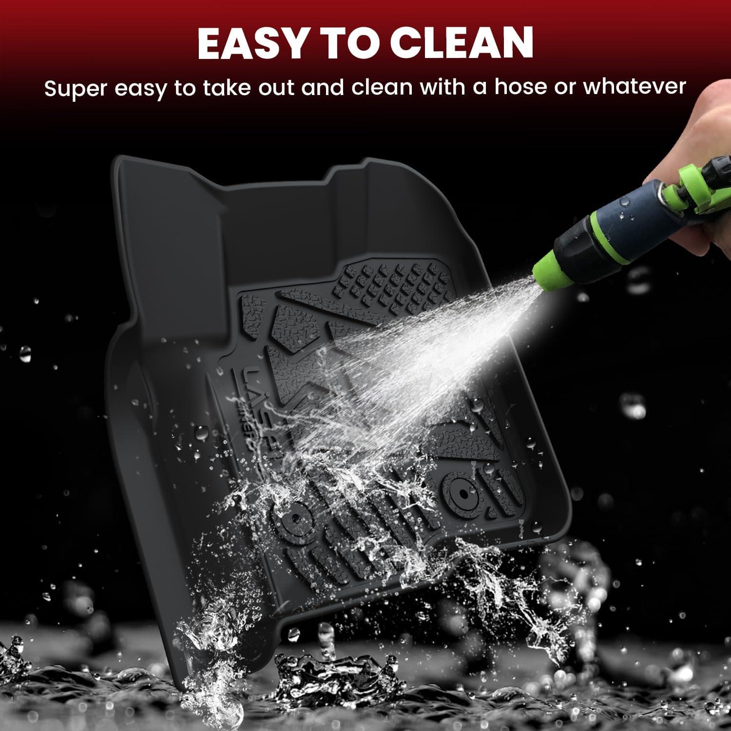 【TPE: Safe & Durable】LASFIT floor mats is made of 100% high-quality TPE material (thermoplastic elastomer). TPE is the perfect combination of environmental protection and durability, safe, healthy, non-toxic and odorless, providing comprehensive safety protection for you, your family, children and pets. At the same time, TPE material is durable and resistant to deformation, without worrying about seasonal high temperatures or extreme cold weather, and can maintain its original state for a long time. (Injection reinforcement ribs)