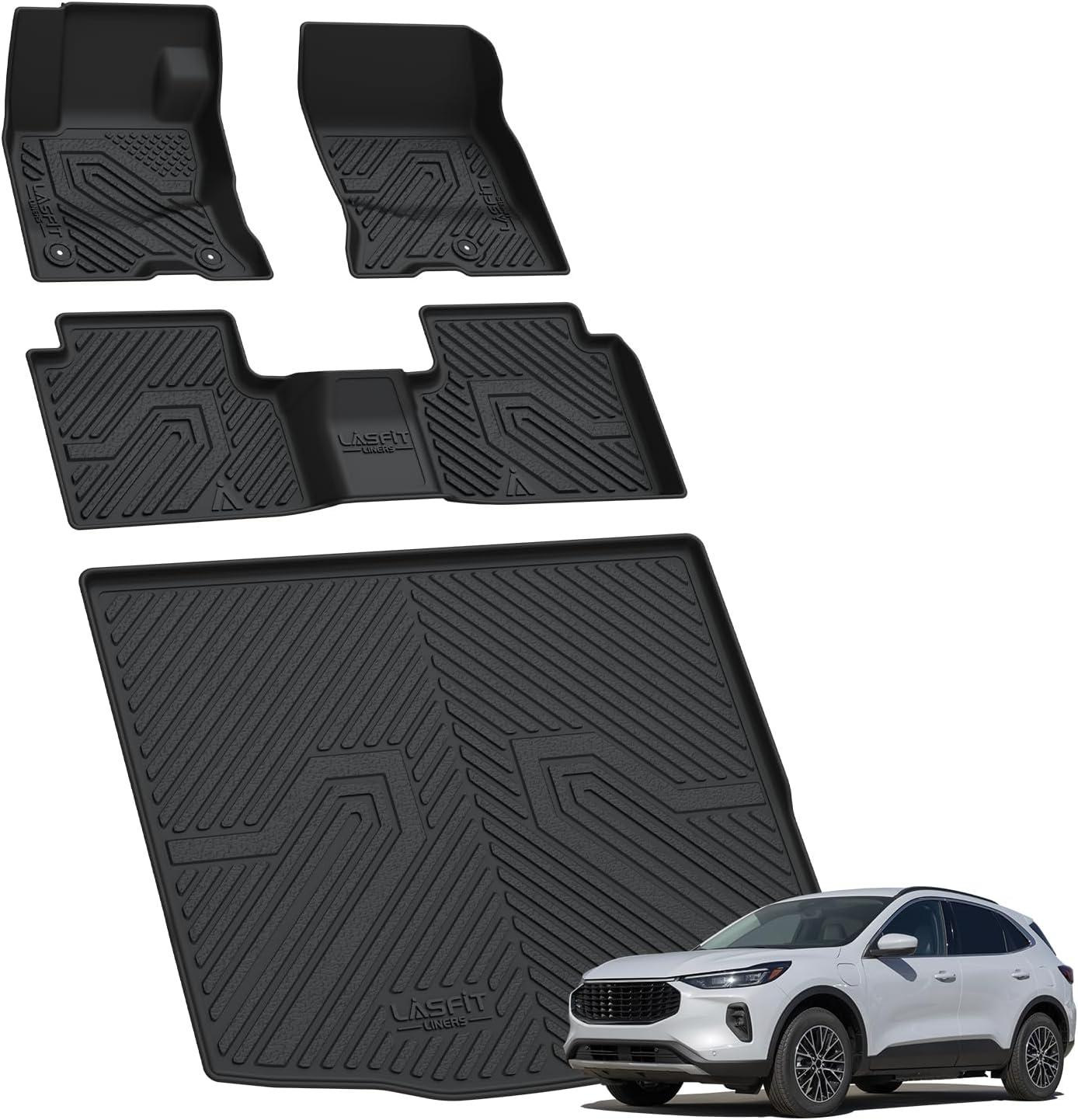 LASFIT Floor Mats for 2025 2026 Ford Expedition 7 Seats Standard (Not Fit 8 Seats and Not Fit Max),All Weather Protection TPE Easy Clean Floor Liners,3Row,4PCS Black(5) Escape Hybrid| 20-26 | Combo Set)