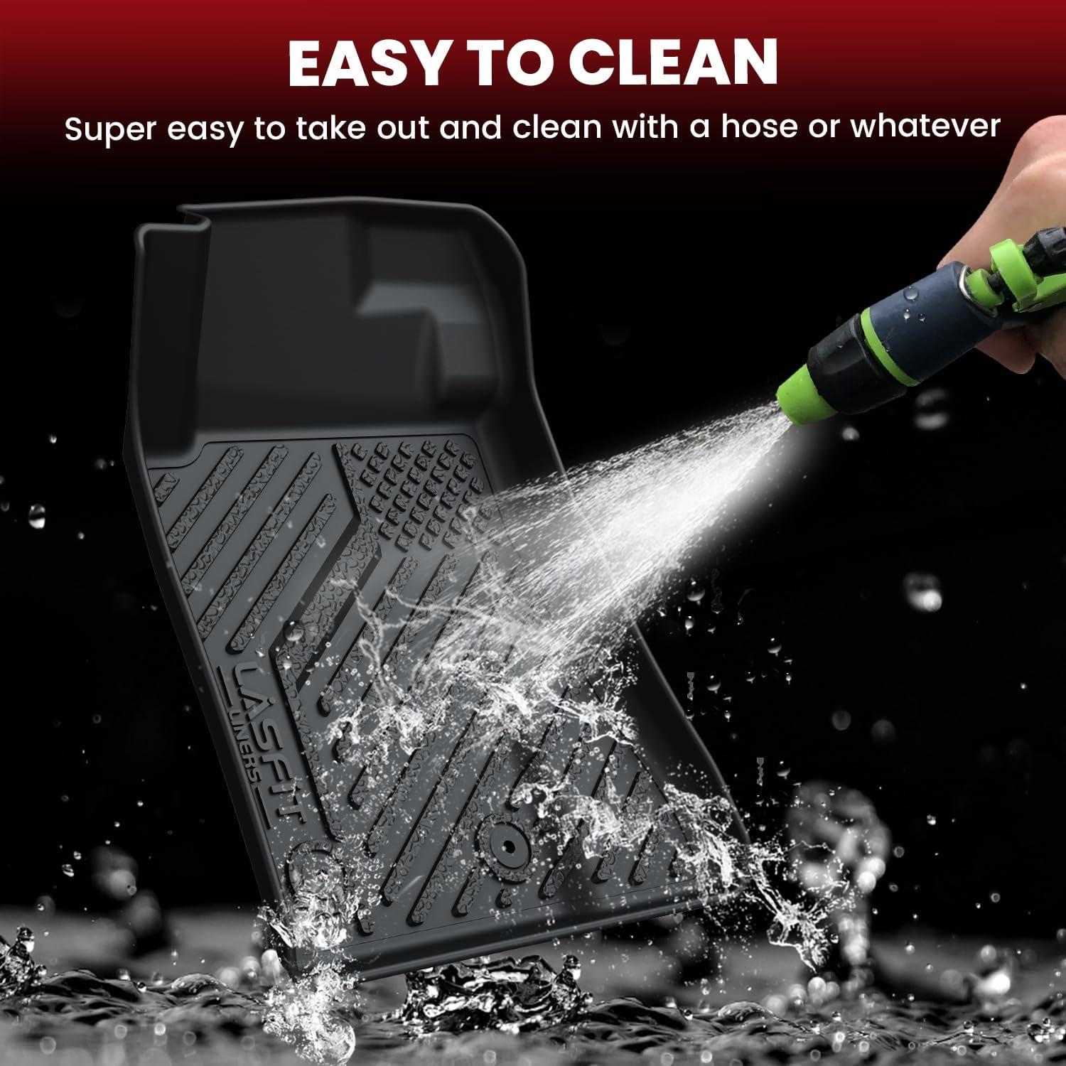 【TPE: Safe & Durable】LASFIT floor mats is made of 100% high-quality TPE material (thermoplastic elastomer). TPE is the perfect combination of environmental protection and durability, safe, healthy, non-toxic and odorless, providing comprehensive safety protection for you, your family, children and pets. At the same time, TPE material is durable and resistant to deformation, without worrying about seasonal high temperatures or extreme cold weather, and can maintain its original state for a long time. (Injection reinforcement ribs)