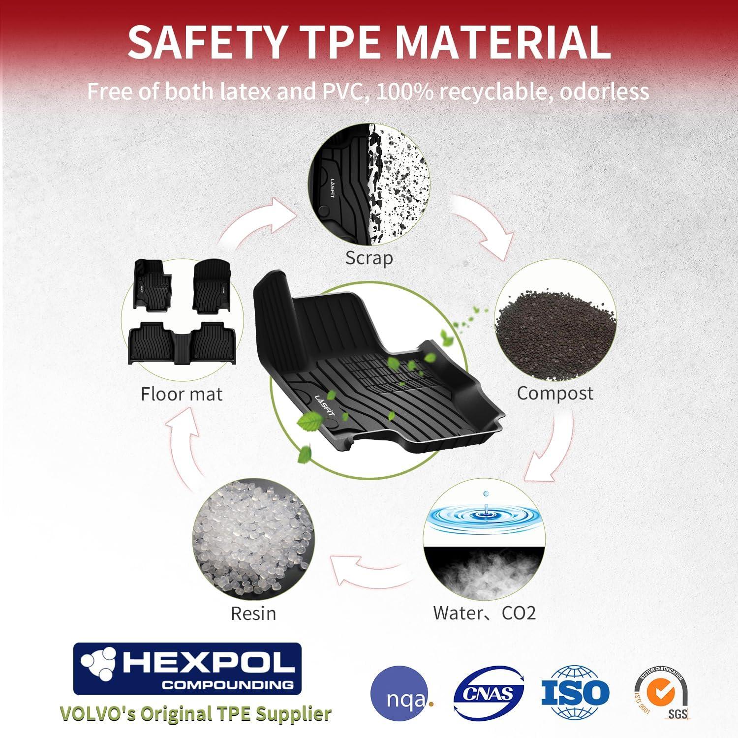 Premium TPE Material : LASFIT floor mats made of 100% brand new TPE material (Thermoplastic Elastomer) for a comfortable and soft touch and exquisite finish. More friendly to the elderly, children and pets. Exclusively designed anti-slip studs for more safety and shock and sound absorbent.