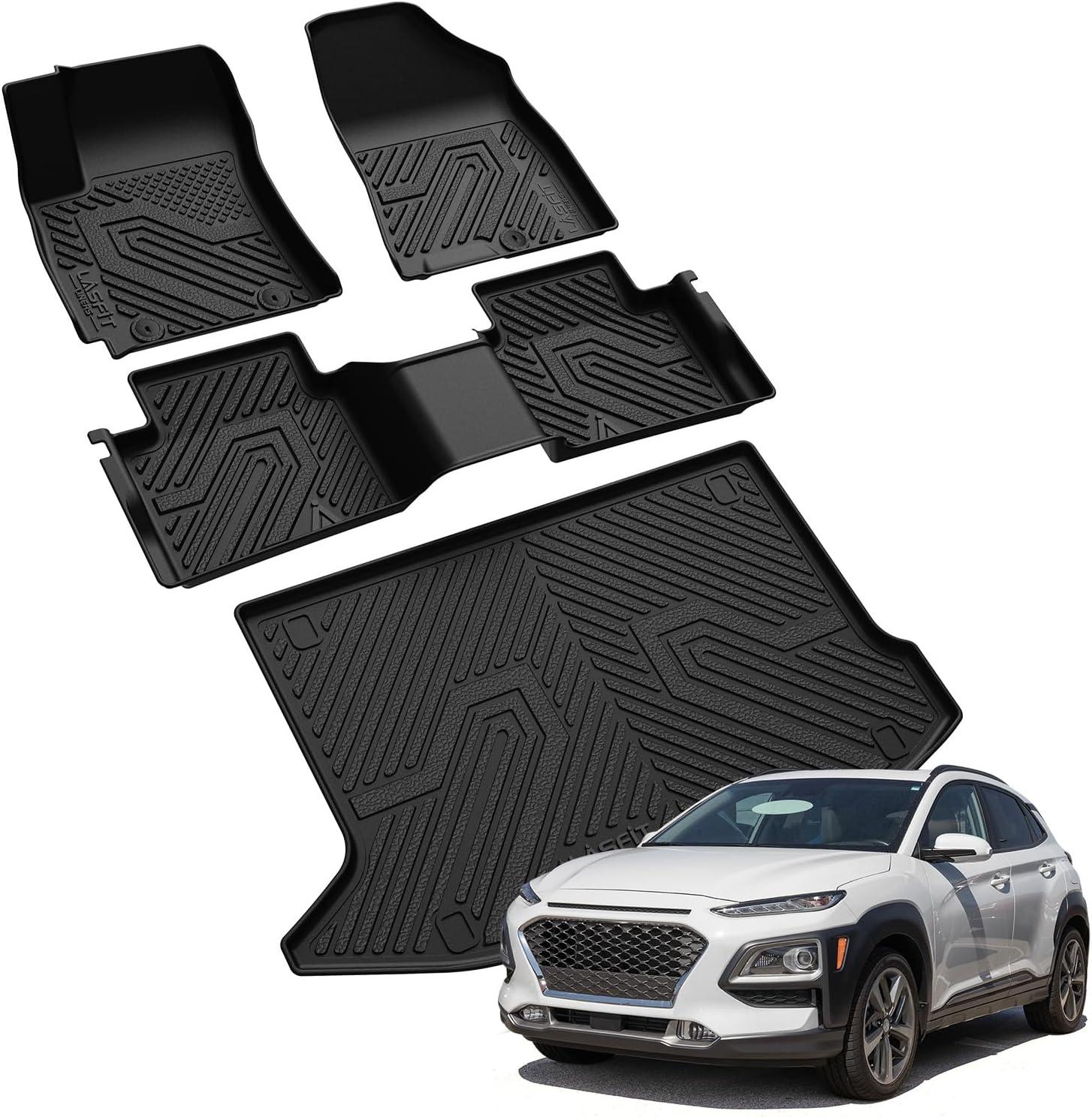 LASFIT Floor Mats for Nissan Pathfinder 2013-2020 / Infiniti QX60 2014-2021 / JX35 2013, All Weather TPE Custom Fit Easy Clean Durable No-Curling Trunk Mat for Pathfinder & QX60 & JX35(2)For Hyundai Kona | 2018-2023 | Gas)