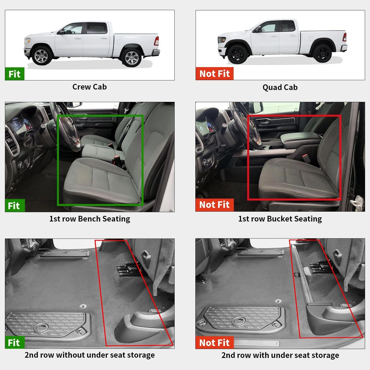 LASFIT LINERS – Compatible for Dodge Ram 1500/2500/3500 Crew Cab 2013-2018, for Dodge Ram 1500 Classic Crew Cab 2019-2024 (4 full size doors). NOT fit for regular cab/mega cab.