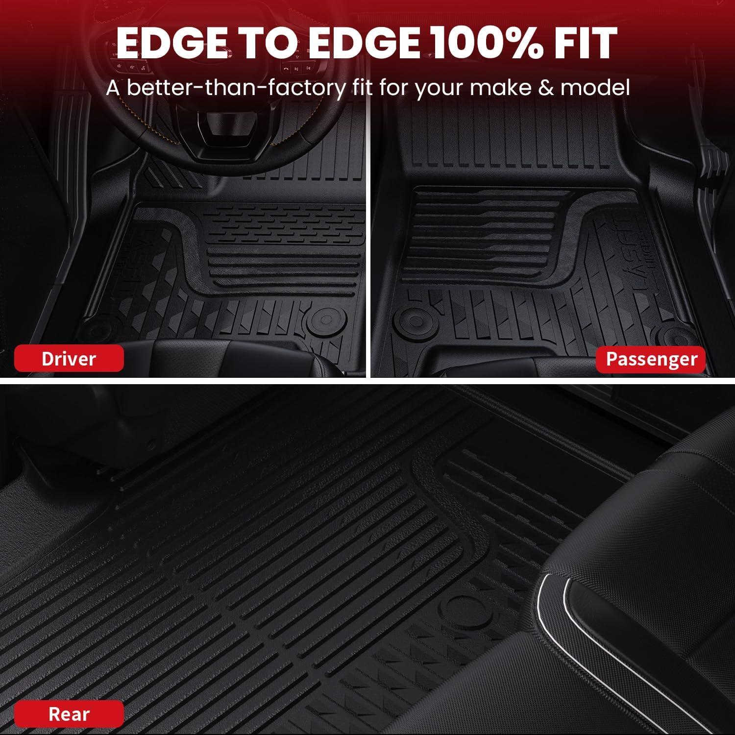 FIRM YET FLEXIBLE – Raised edges all the way around have been upgraded to the use of innovative material, allowing our floor liners last long, way more durable that they won't curl or end up buckling.