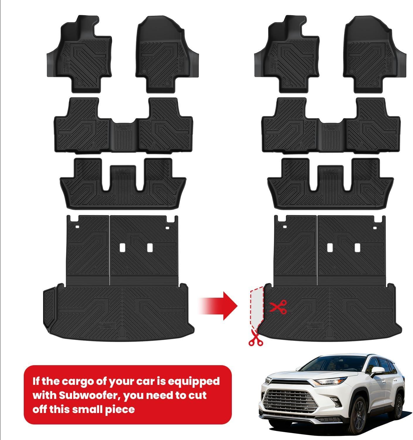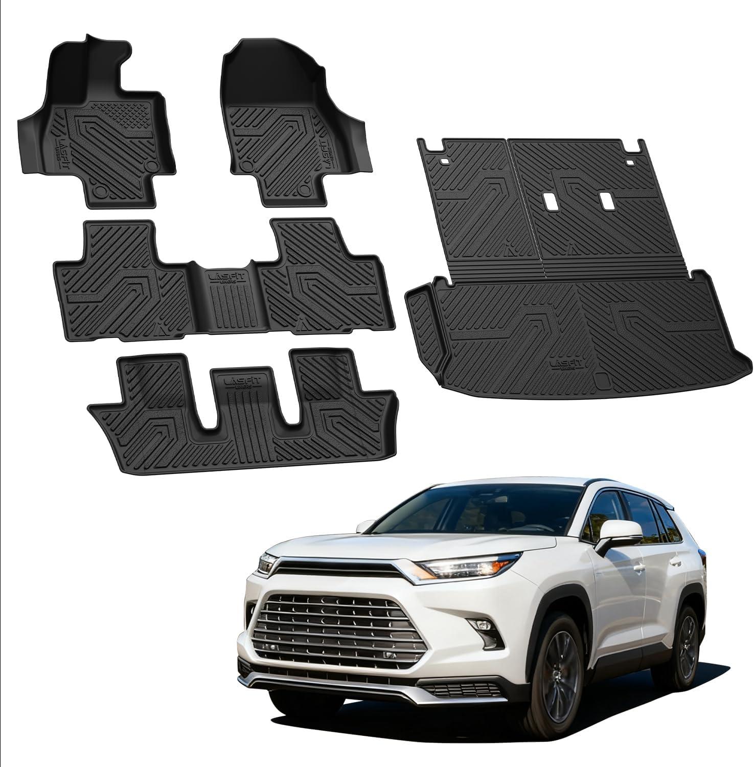 【CUSTOM FIT】LASFIT cargo mats&Floor Mat for Toyota Grand Highlander 2026 2025 2024(Include Hybrid) Fits with or without a subwoofer (need to trime). State-of-the-art 3D laser scanning technology ensures dge to edge full coverage, perfectly custom fit for Toyota Grand Highlander 2025 Hybrid Floor Mats. Install easily and locked in place.