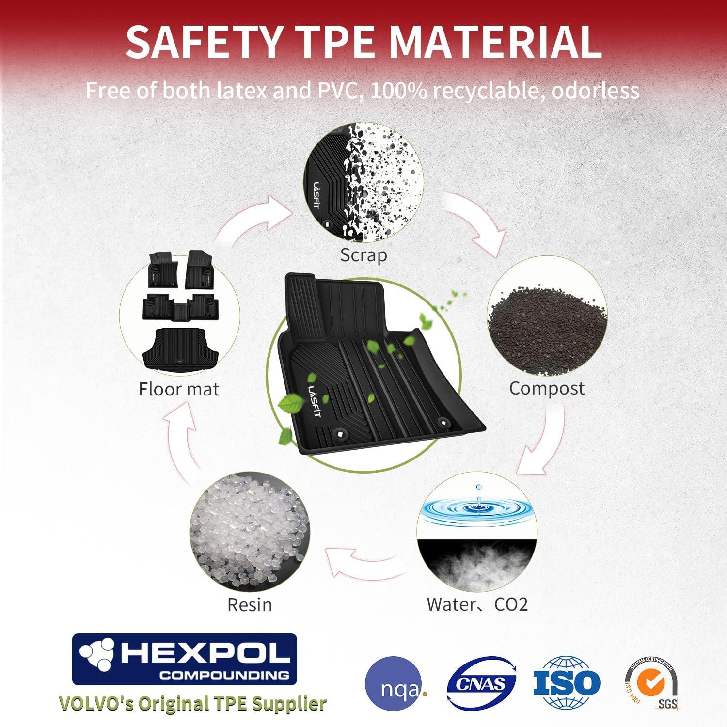 ENVIRONMENT FRIENDLY- Tacoma mats use elastic TPE (Thermoplastic Elastomer), No foul odor is produced even at high temperatures. soft touch and exquisite finish. The Lasfit Tacoma floor mats are skid-proof and recyclable.