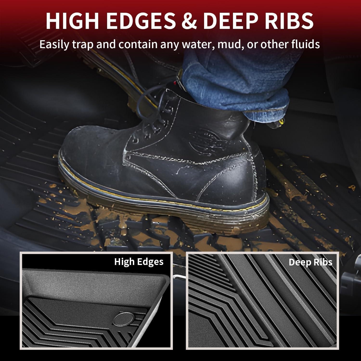 FIRM YET FLEXIBLE – These durable Tacoma floor mats Raised edges all the way around and have been upgraded to the use of innovative material, allowing our floor liners to last long, and way more durable that they won't curl or end up buckling.