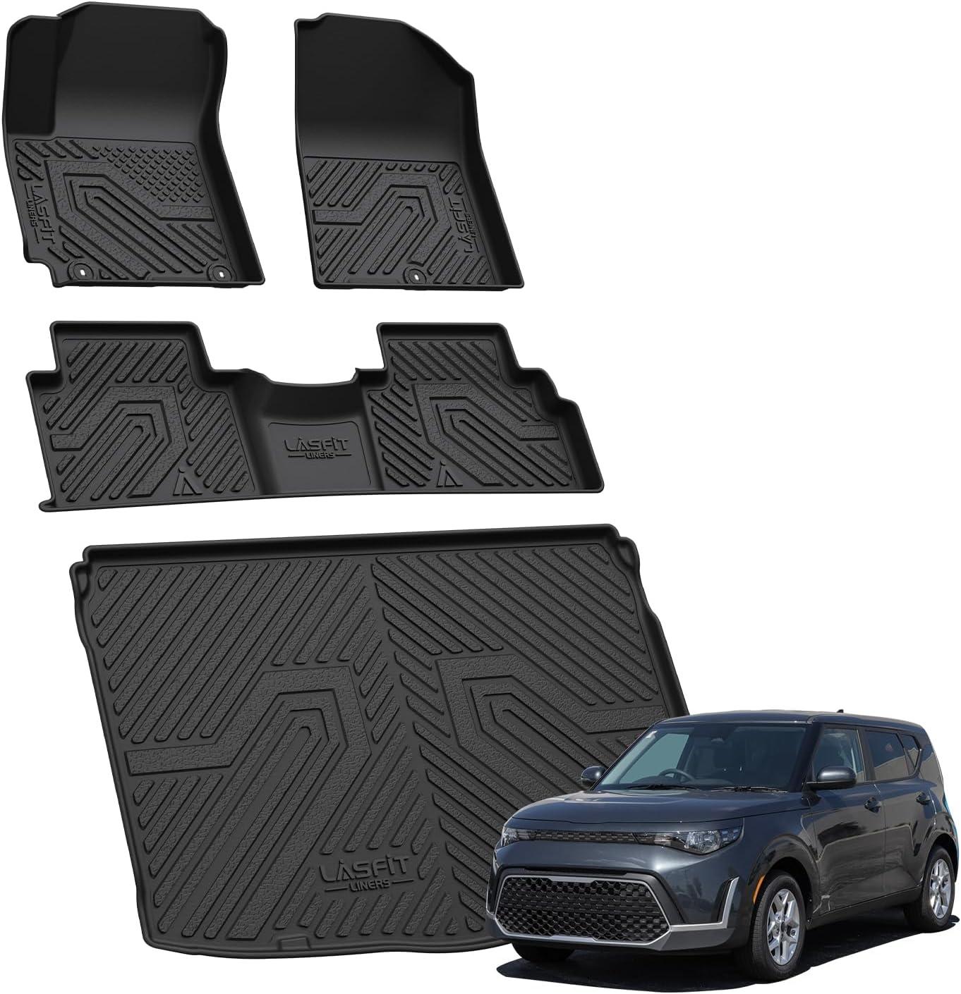LASFIT Floor Mats & Seatback Mats & Cargo Mat for Nissan Armada 2025-2026 / Infiniti QX80 Fit 7seats (Not Fit 8 Seats), Custom Fit All Weather TPE Easy Clean Durable Floor Liners Car Mats,Black(3)For Kia Soul | 2020-2025)
