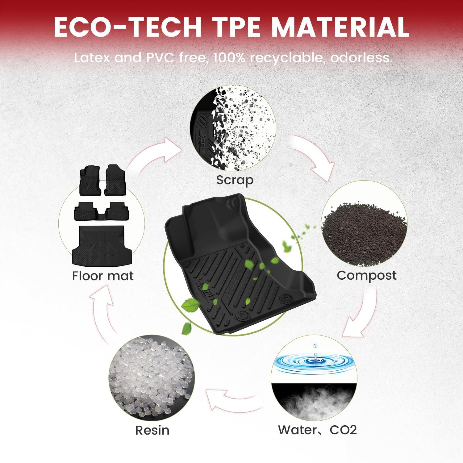 Premium TPE Material : LASFIT floor mats made of 100% brand new TPE material (Thermoplastic Elastomer) for a comfortable and soft touch and exquisite finish. More friendly to the elderly, children and pets. Exclusively designed anti-slip studs for more safety and shock and sound absorbent.