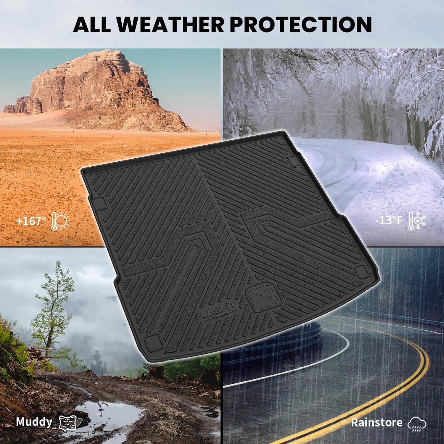 LASFIT Floor Mats&Trunk Mat&Backrest Mat for Rivian R1S 2024 2023 2022, TPE All Weather Floor Mats Custom Fit Floor Liner&Cargo Mat for R1S 2022-2024 Full Set Car Mats and Cargo Liner(3)2018-2025|For Audi Q5/SQ5|Cargo Mat)