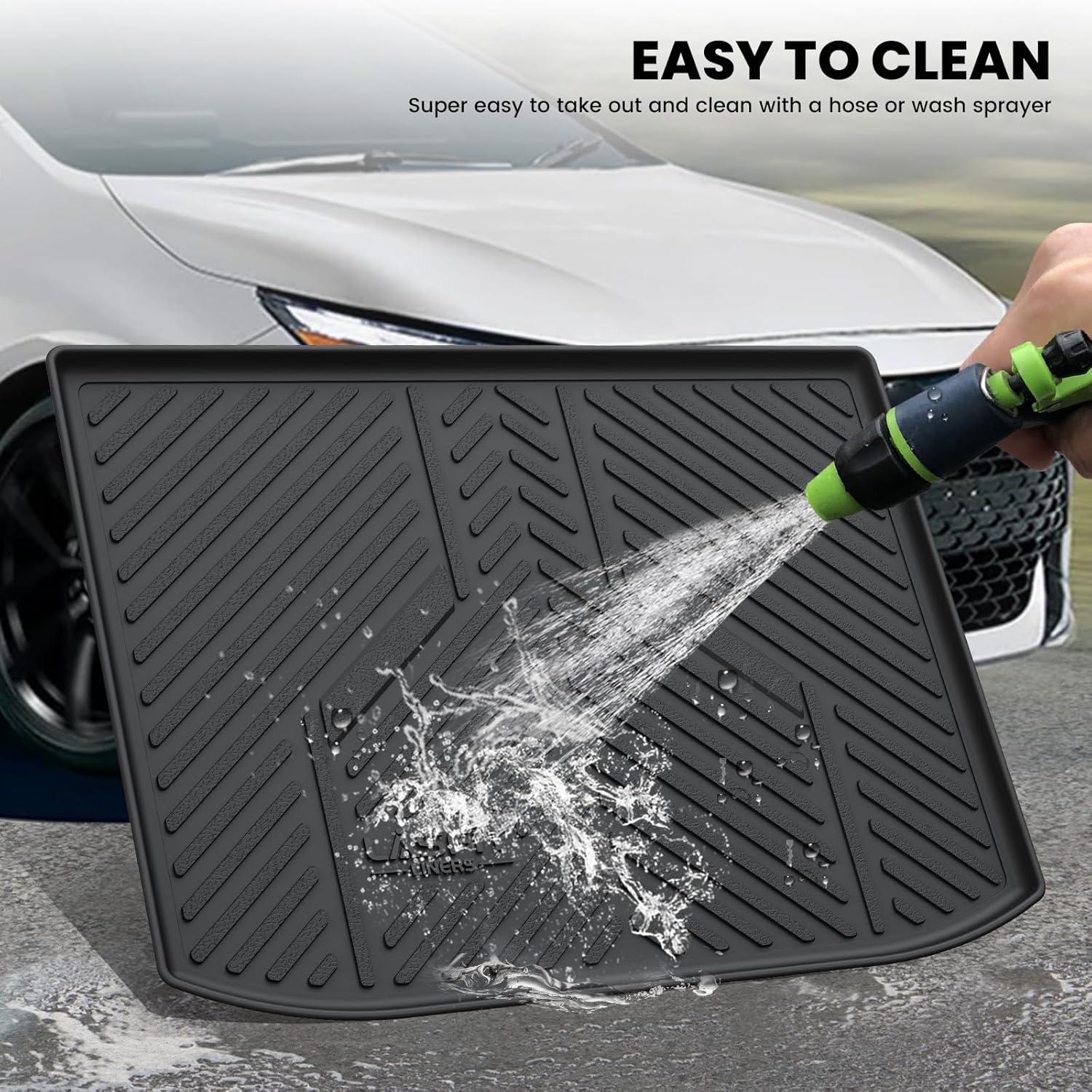 DURABLE AND EASY TO CLEAN-Our 2022 2023 2024 R1S Trunk mats are built to last—wear-resistant, scratch-resistant, and designed to avoid curling or deformation. They maintain their flexibility and elasticity, even in extreme weather. Cleaning is a breeze: simply remove the mats, spray them with a hose, rinse, dry, and place them back. Keeping your floor mats looking brand new has never been easier