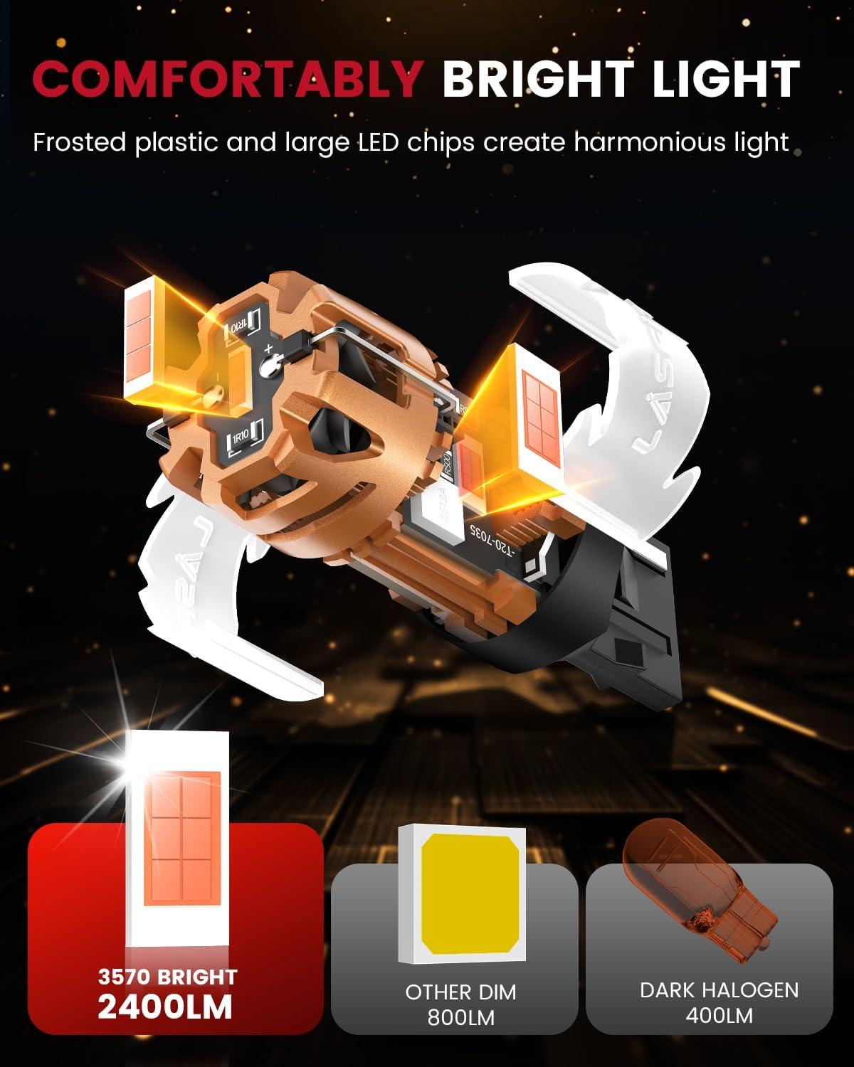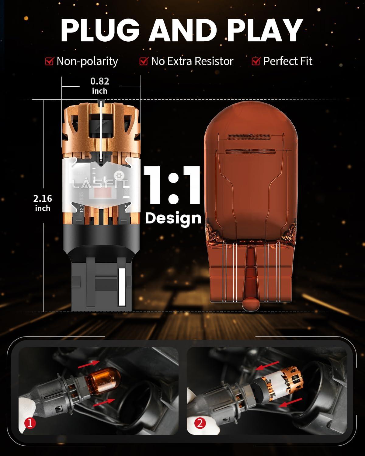imageLASFIT PWY24W LED Bulbs Turn Signal Light PW24W Built in Resistor Canbus Error Free Extremely Bright Blinker AmberYellow Replacement Upgraded Pack of 2Amber
