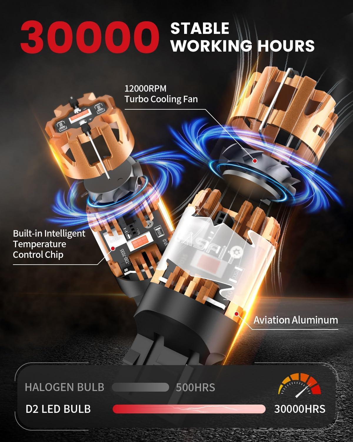 Efficient Aluminum Heatsink System: simple and effective heat dissipation and temperature control will keep your bulbs safe. Notice: Please turn off the power when replacing the bulb.