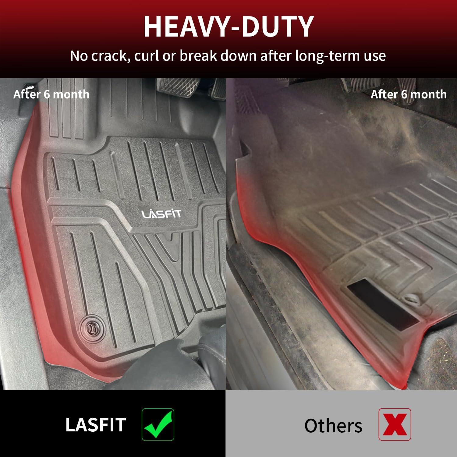 【TPE: Safe & Durable】LASFIT seat covers are made of 100% high quality TPE material, which combines environmental friendliness and durability perfectly. TPE is safe, healthy, and non-smelly, providing all-around safety for you, your family, kids and pets. TPE is also durable and resistant to deformation, ensuring mats remain in original shape for a long time without worrying about seasonal heat or extreme cold weather.
