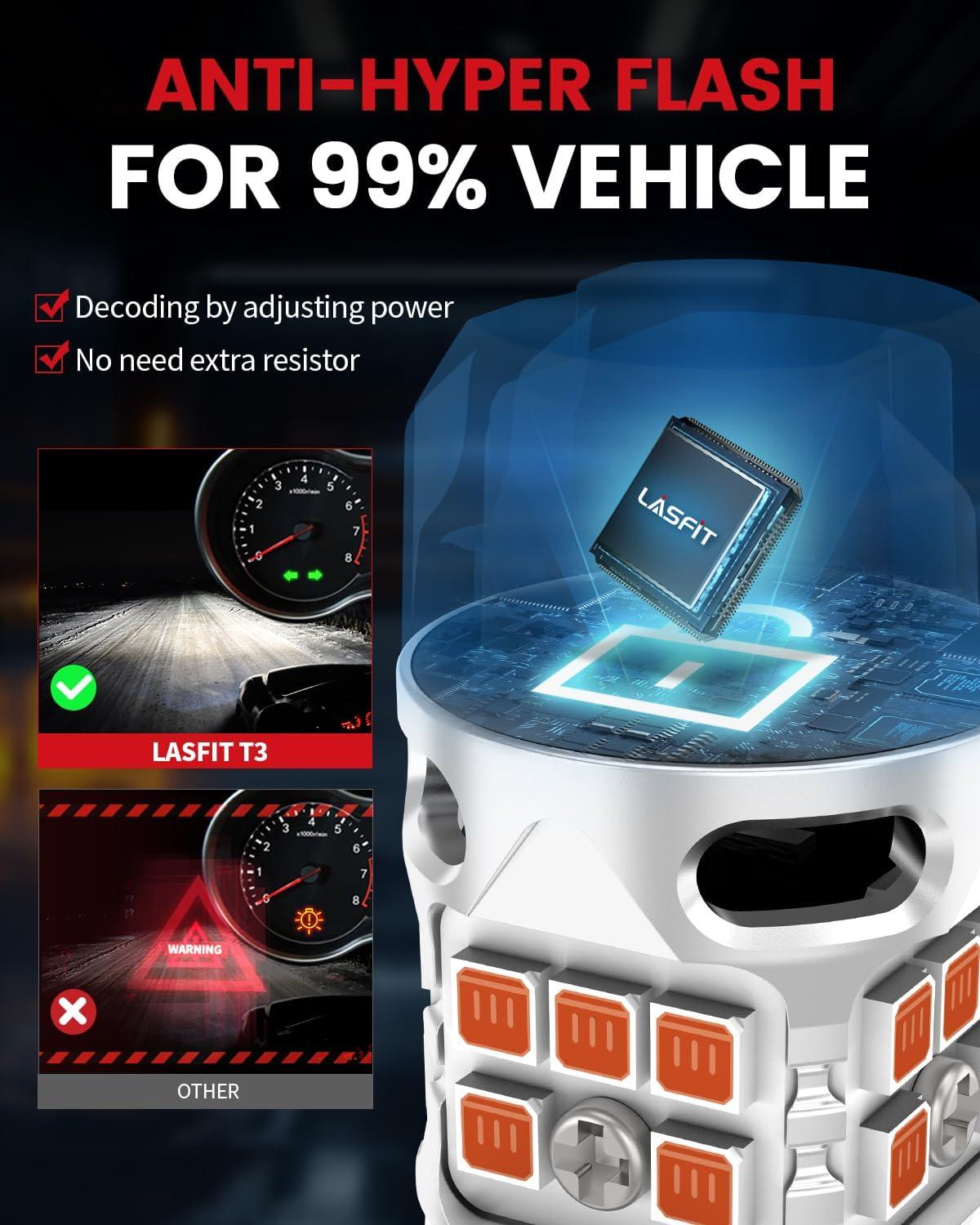 LASFIT T3 3157 LED Bulb Amber 3156 Built In Resistor 3057 Turn Signal CANBUS Error Free Upgraded Front Rear Light 4157 3457 3047 3357 4057 3056 3456 4156, Only For Standard Socket(2pcs)