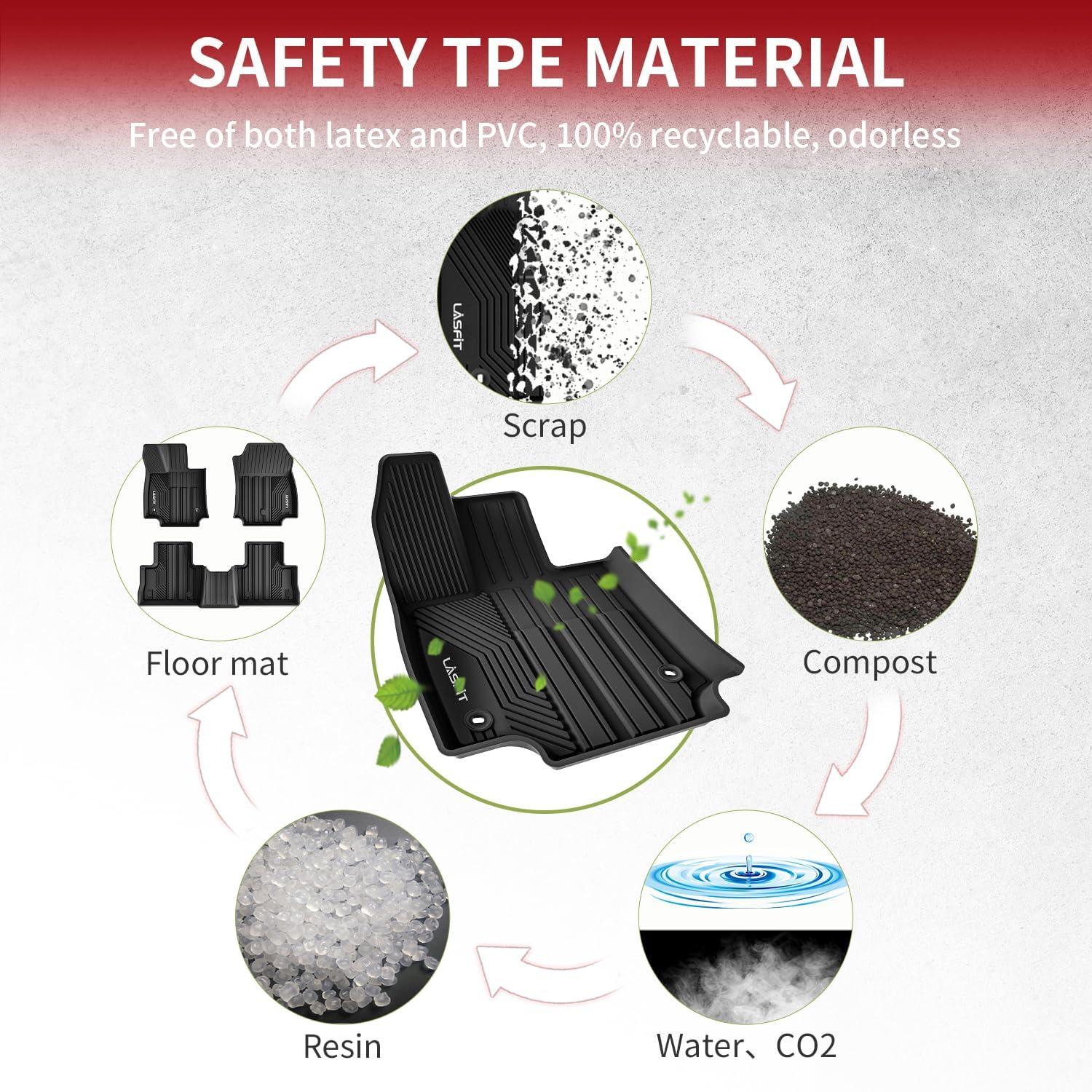 【ENVIRONMENT FRIENDLY】The All Weather 4 runner trunk mat&backrest mat use elastic TPE (Thermoplastic Elastomer), No foul odor is produced even at high temperatures. soft touch and exquisite finish. The Lasfit 4 runner cargo mats are skid-proof and recyclable.