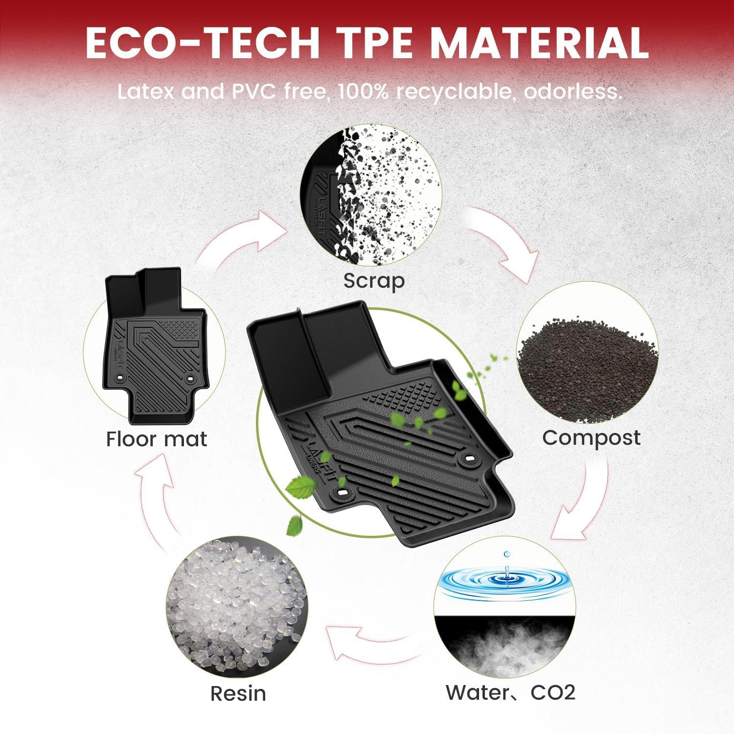 ENVIRONMENT FRIENDLY- The All Weather 4 runner mats use elastic TPE (Thermoplastic Elastomer), No foul odor is produced even at high temperatures. soft touch and exquisite finish. The Lasfit 4 runner Trunk&Seatback mats are skid-proof and recyclable.
