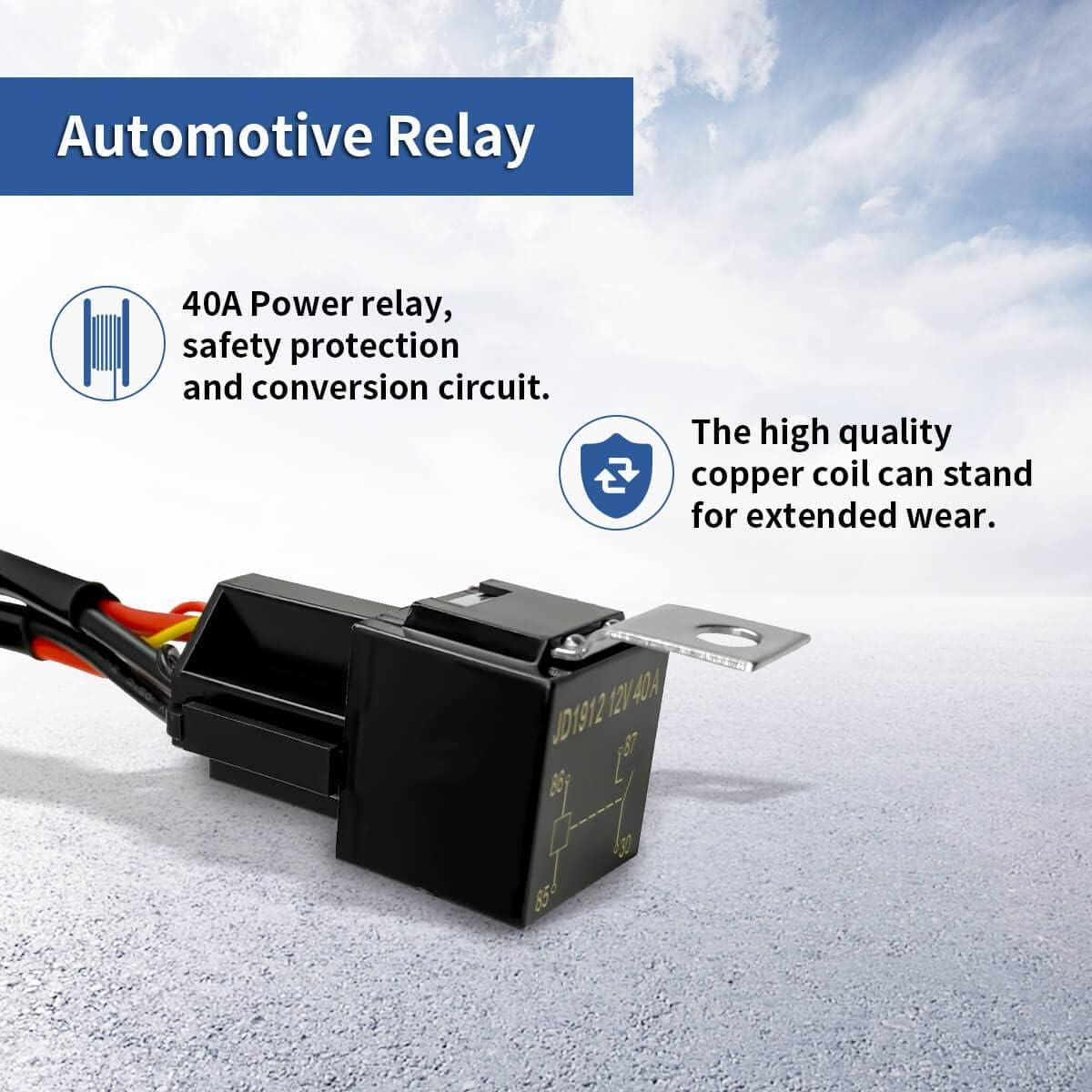 【HIGH QUALITY AND PERFORMANCE】: Lasfit Wiring Harness Kit made of rubber protected replaceable relay, high quality fuse, elite switch. Fully enclosed PVC waterproof exterior. universal fit for any work lights , Dicth light ,hood light ,bumper light.