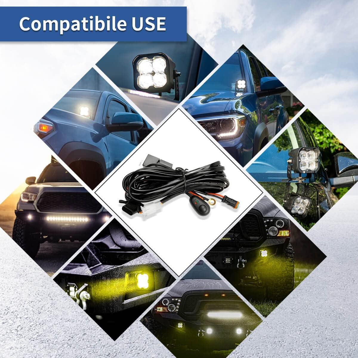 【Perfectly Adapted To Led Pods & Light Bar】: This wiring harness kit Design for Lasfit led pods and Light bar.enough for a wide range of applications. Compatible with Jeeps, Trucks, Cars, Boats, SUV, UTV, ATV, Motorcycles, 4×4,etc.Fully consider the various problems faced Off-Road night driving.