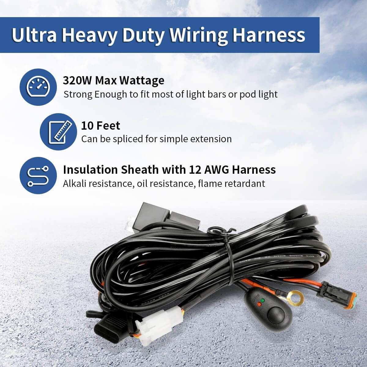 【Plug and Play – Easy to install】 – 9.8FT Extendable Wiring Harness, plenty length from switch connection to lights connection ,Plug and Play convenient design ,easy to install